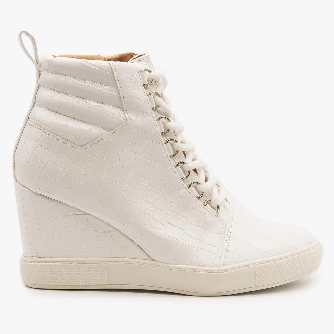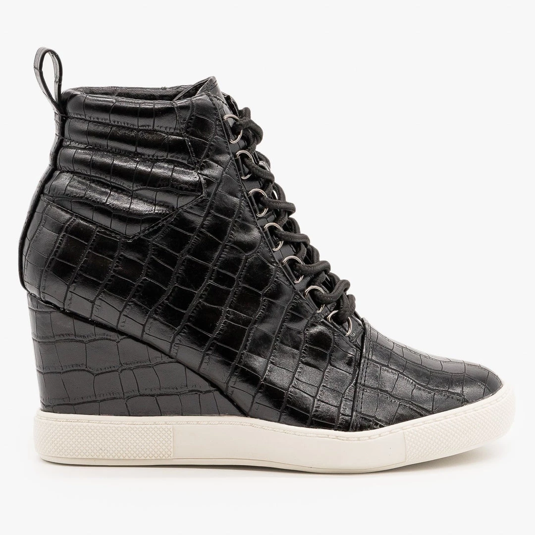 AMS Shoes Newest Arrivals Crocodile Lace Up Sneaker Wedges