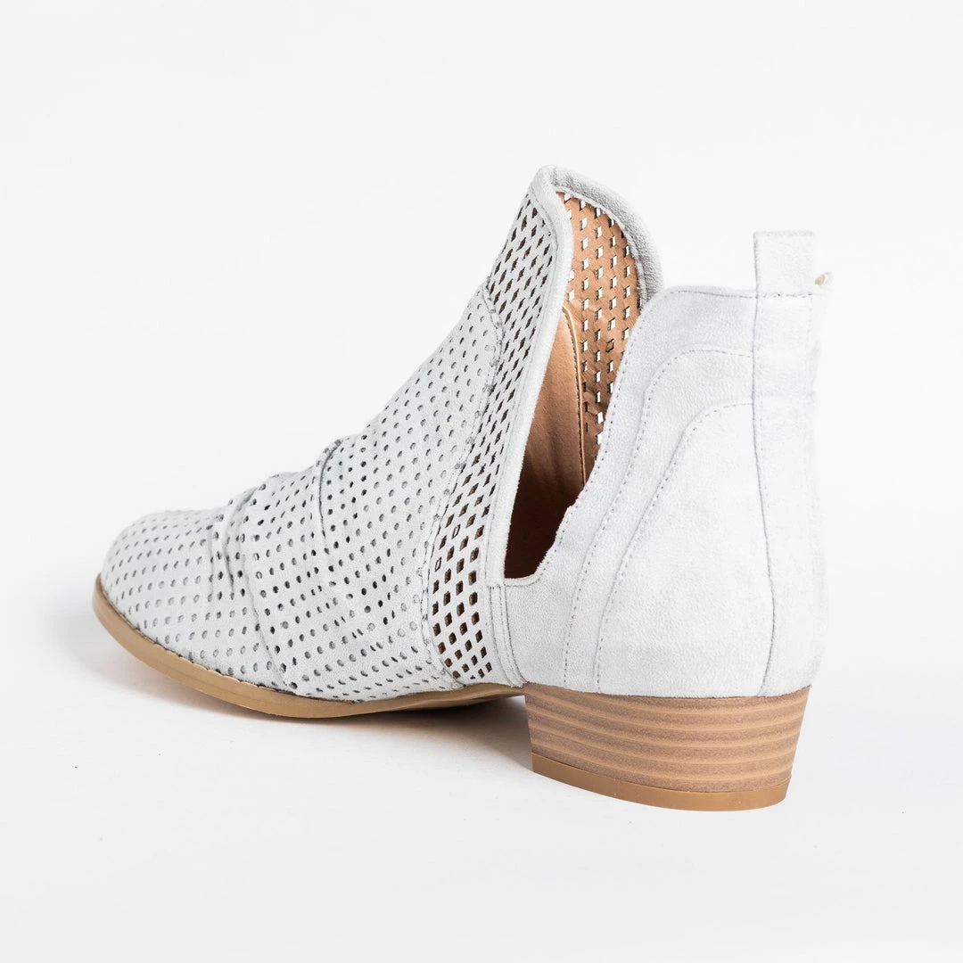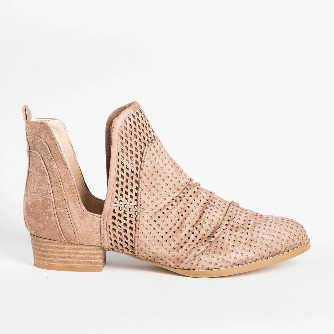 Put some pep in your step with the AMS Shoes Escape-9 ankle booties! Made out of faux suede, these booties feature a trendy deep side cutout and a gorgeous pinhole design throughout the shoe. The 1.5″ stacked heel gives you just a bit of height, while the posh almond-shaped toe makes these shoes great to wear everyday. You can pair these booties with some raw hem ankle jeans and a button-up chambray top for a cute, laid-back outfit! Made out of all man-made/vegan materials.