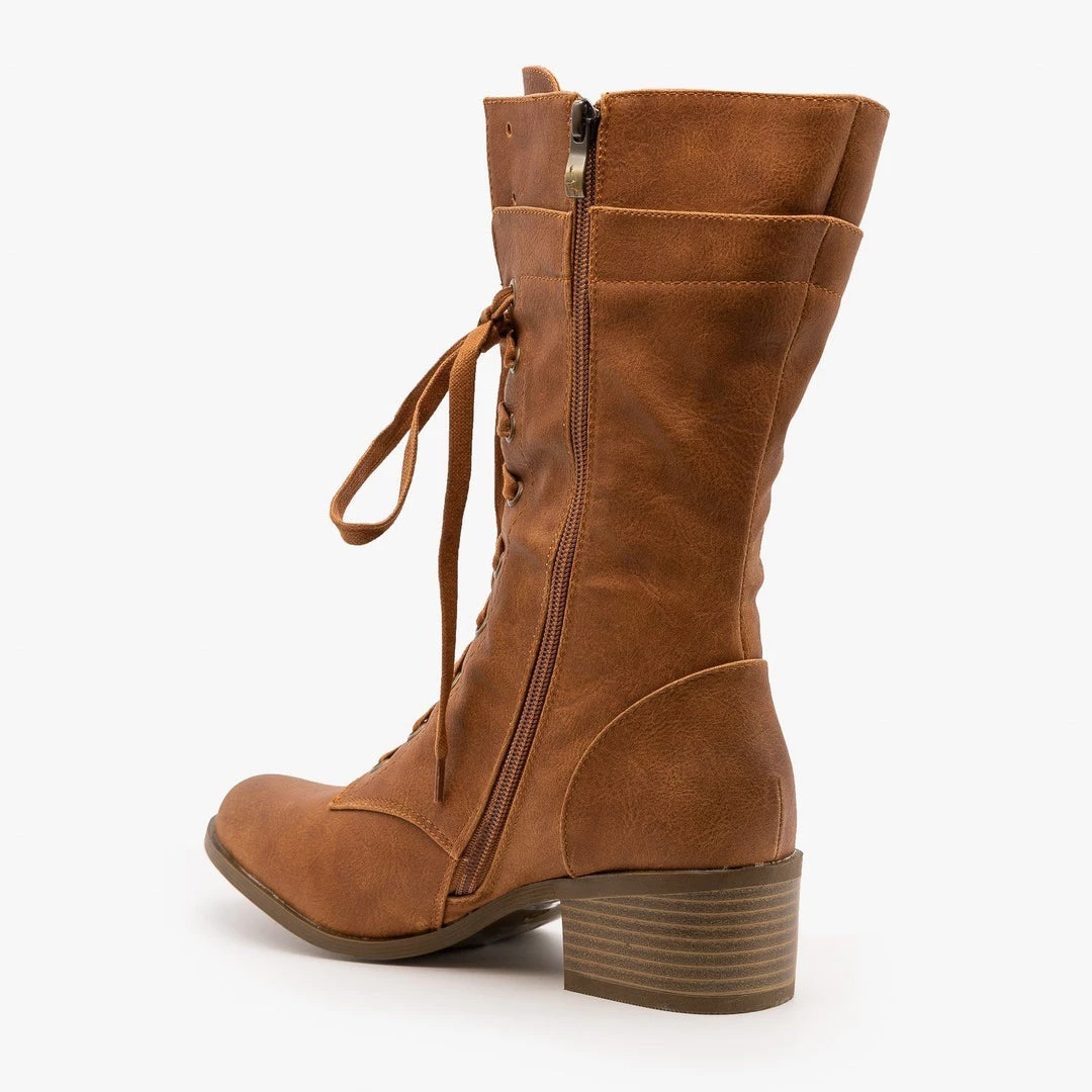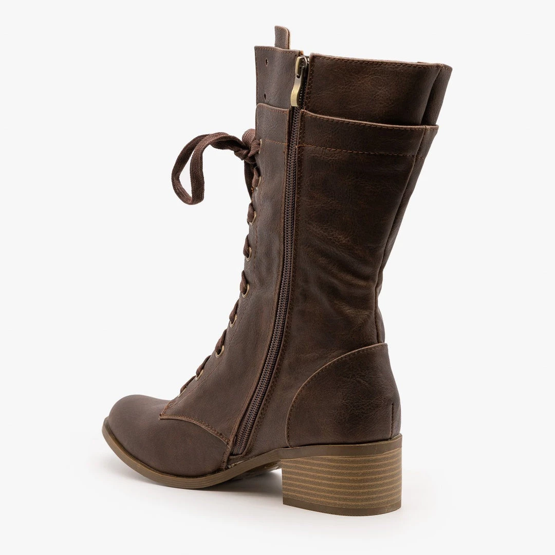 AMS Shoes Newest Arrivals Posh Chunky Heel Combat Boots FINAL SALE