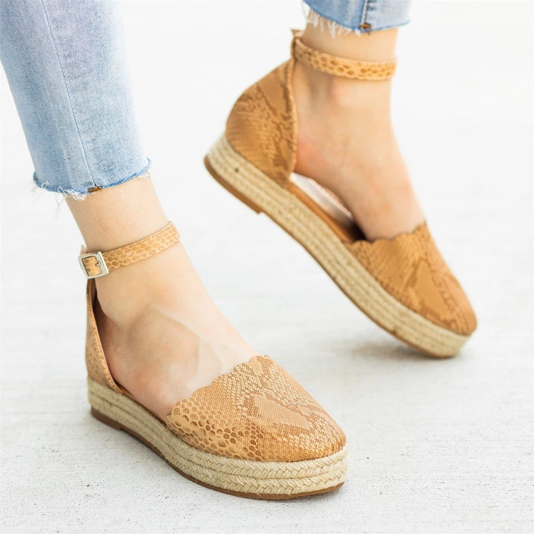 We guarantee that you can’t help falling in love with these adorable AMS Shoes Audrey-15 espadrille flats! Beautifully crafted out of faux leather or faux suede (leopard), these wedges feature an adjustable ankle strap for easy on/off access and support and a gorgeous scalloped edge design for added style. The 1″ espadrille flatform gives these flats just a bit of height while the animal print design adds some sass and a fun, trendy look. Pair these flats with some raw hem ankle jeans or with a denim jumper dress for a cute summer look! Made with all man-made/vegan materials.