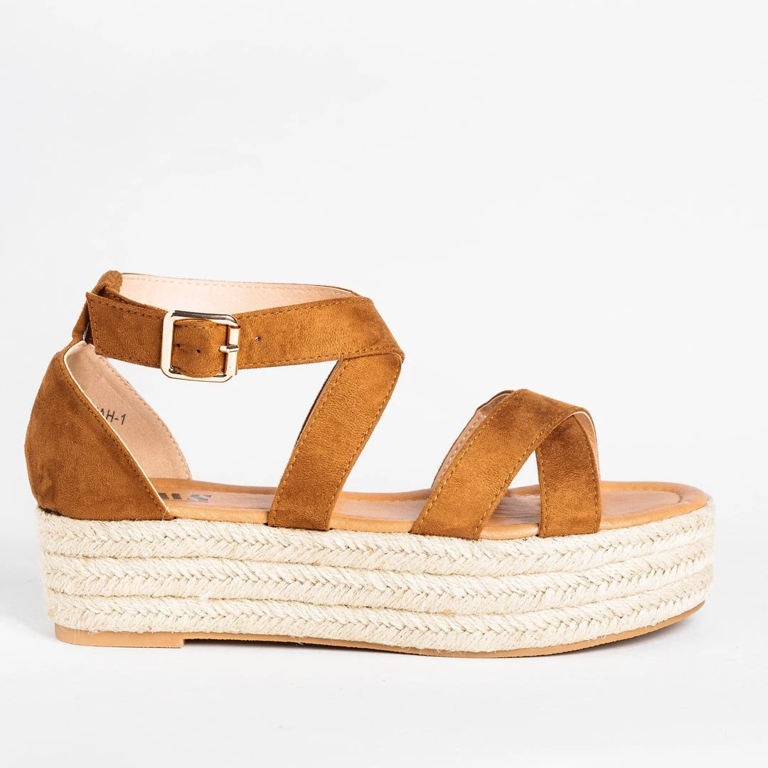 Put some pep in your step with these beautiful AMS Shoes Hannah-01 flatform sandals! Crafted out of faux suede, these lovely platform sandal wedges feature a 2″ espadrille flatform sole and an adjustable ankle strap for easy on/off access. The trendy criss cross trap design also adds so edge to these adorable shoes. Pair these sandals with a denim jumper and layered over a crop top for a super cute and trendy summer outfit! Made with all man-made/vegan materials.