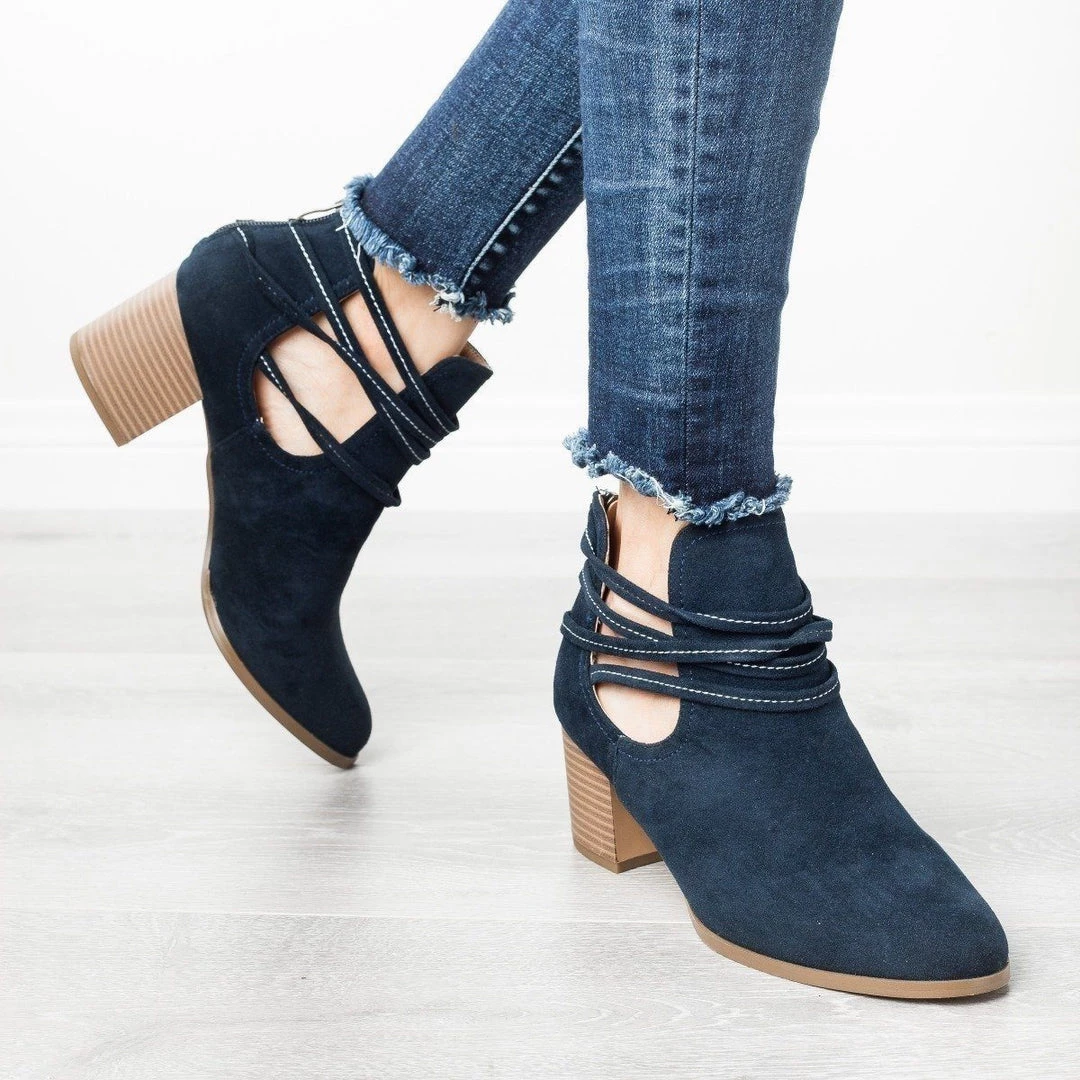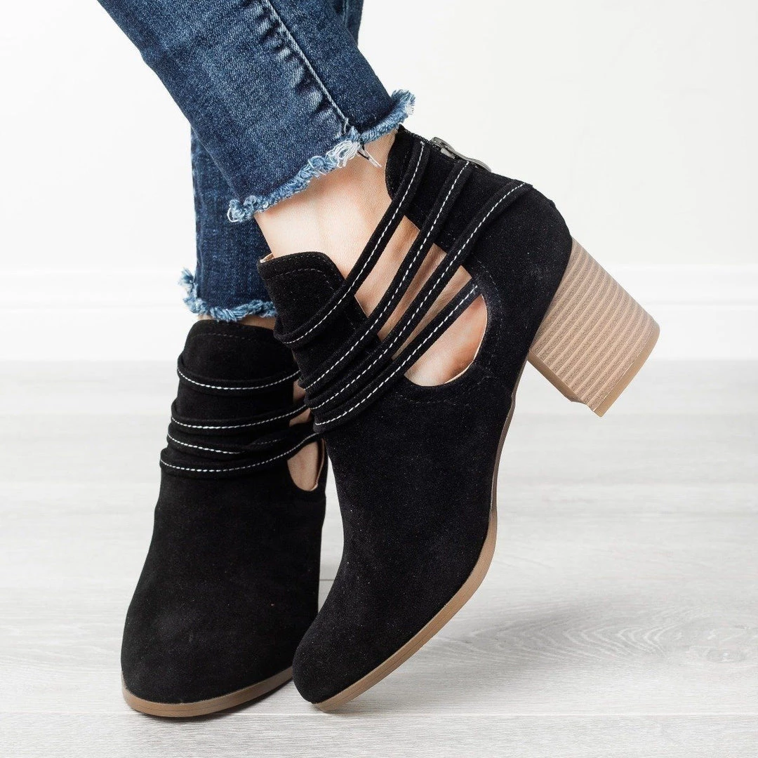 We can’t help falling in love with these AMS Shoes Prize-5 ankle booties, and we guarantee that you will too! Beautifully crafted out of faux suede, these booties feature a 2″ stacked chunky heel and a rounded almond-shaped toe, making these shoes perfect for you to wear to your next date night or on a day out with friends. These booties also feature a back ankle zipper, which allows for easy on/off access. The beautiful side cut-outs also add a fun and trendy look to these already stylish booties! Finishing off these shoes is a gorgeous strappy design that wraps around the ankle of the boot. You can wear these shoes with just about anything–from distressed ankle jeans and a flowy blouse, to a faux leather jacket layered over a basic tshirt dress! Made with all man-made/vegan materials.