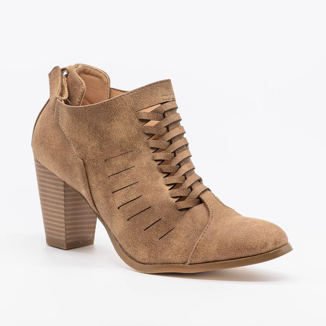 These AMS Shoe Addison-2 ankle booties will have you looking like you stepped right off the runway! Beautifully crafted out of faux leather, these booties feature an almond-shaped toe for a posh look and a 2.5″ stacked chunky heel for height and style. The woven design on the front of the shoe gives these booties a trendy and edgy look while the velcro ankle strap makes putting these shoes on and taking them off a breeze. Pair these booties with some high-waisted ankle jeans and a cropped off-the-shoulder top for a cute and fashionable brunch outfit! Made with all man-made/vegan materials.