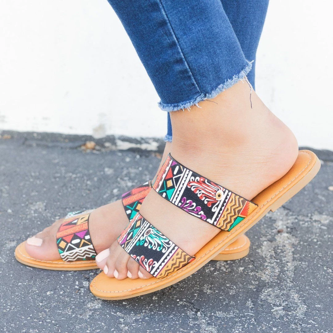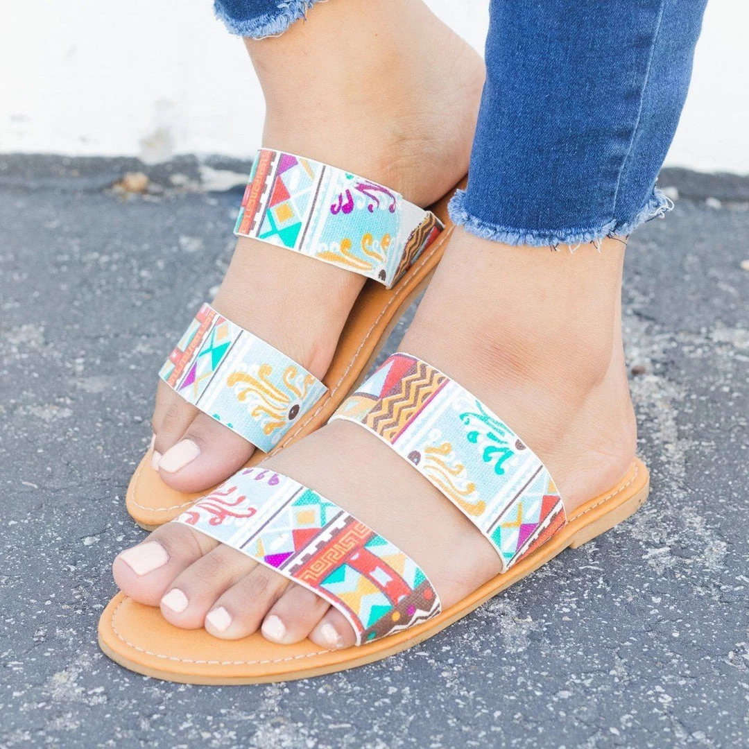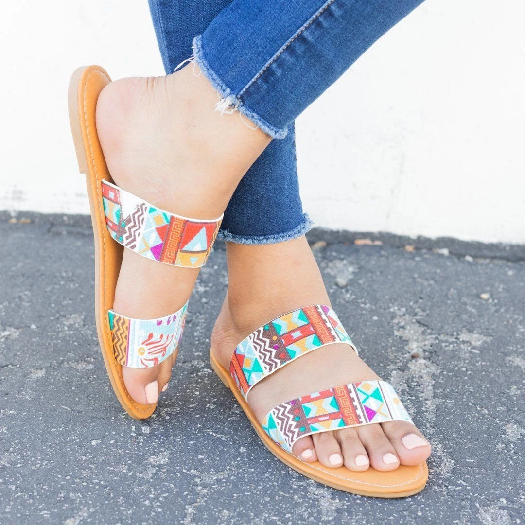 Anna Shoes Newest Arrivals Tribal Double Band Slides