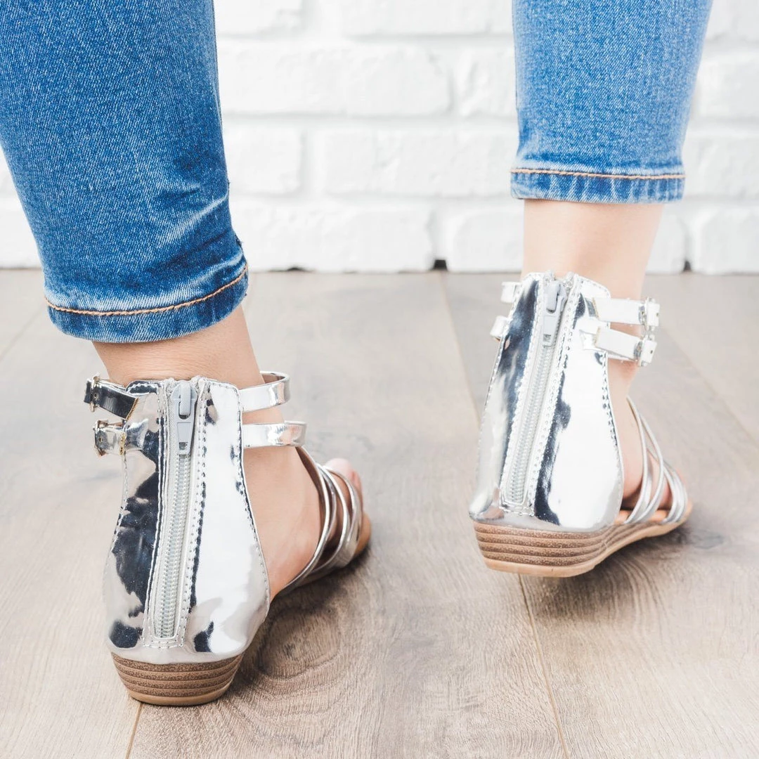 Perfect sandal for the season! The criss cross faux leather straps fit comfortably with thong toe and double ankle straps. Easily get them on and off with a heel zipper!