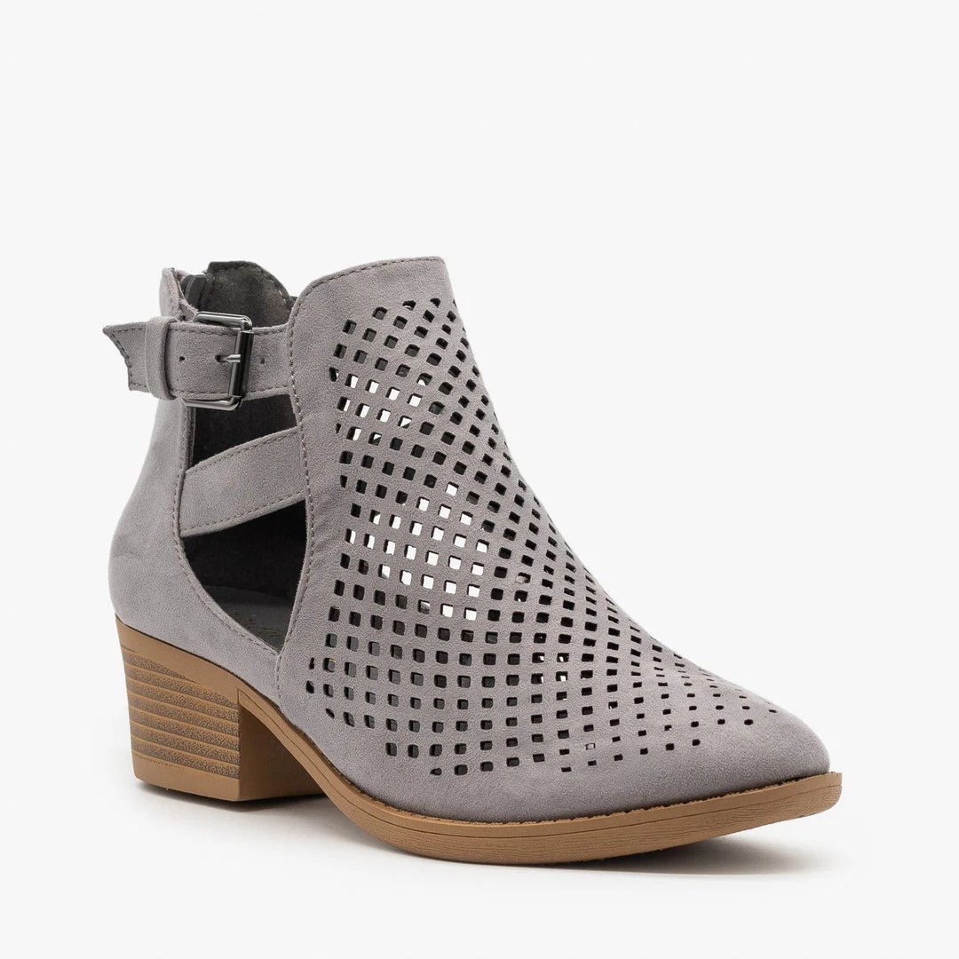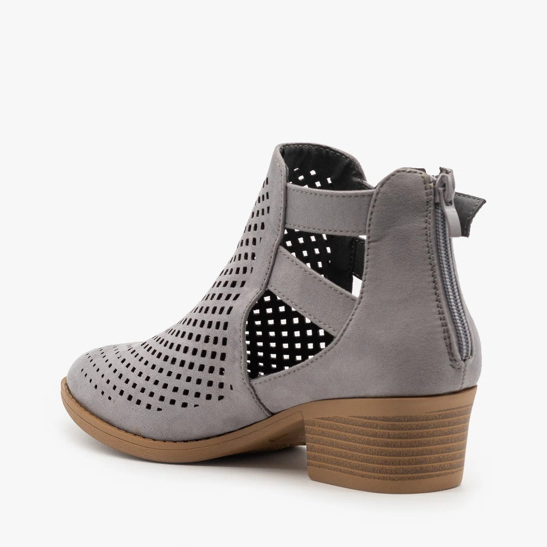ARider Girl Laser Cut Caged Booties Newest Arrivals