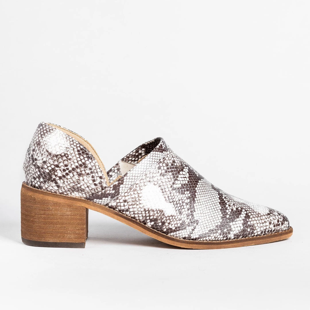Put some pep in your step with the ARider Girl Shoes Clay mid-heels! These beautiful slip-on heels are made out of faux leather (white black snake, snake, black, taupe) or faux suede (leopard, smoke blue) and feature a 2″ block heel for extra style. The almond-shaped toe gives these shoes a posh look, while the slip-on style makes it easy to put these shoes on and take them off. You can wear these shoes with some distressed ankle jeans and a boxy button-up top for a chic and fashionable outfit! Pair these with a corduroy jumper dress and a cute long-sleeved top for a trendy and adorable look! Made with all man-made/vegan materials.