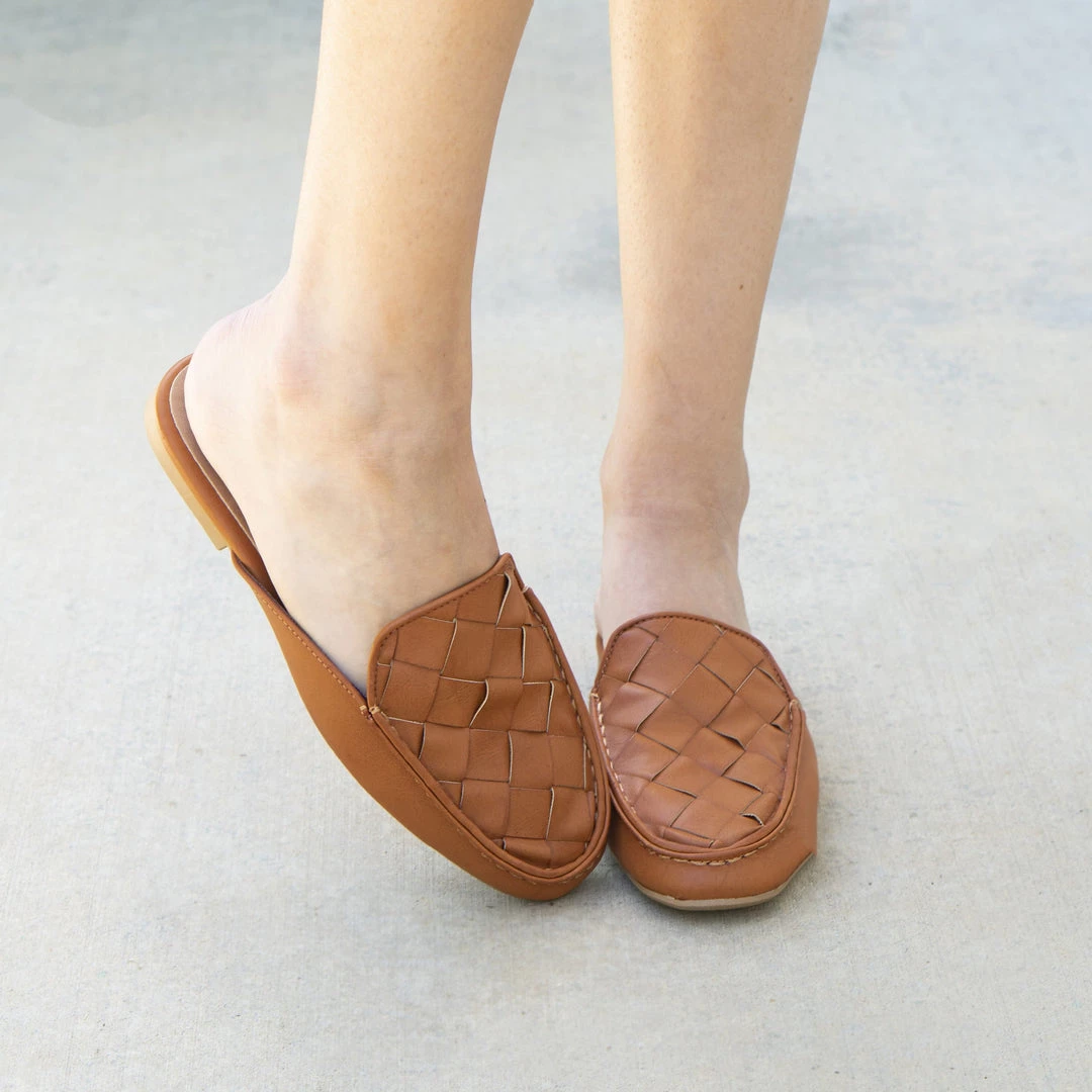 Our Bamboo reaching-14 is your classic mule with a twist! These shoes are crafted from a faux-leather material and feature a mule-like body with closed-toe front and open back. They have a huarache inspired woven design that gives this shoe a trendy look that goes with just about anything! Pair with mom jeans and a cropped T or black leggings and oversized sweater as these shoes are so versatile!Â