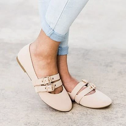 Our Bamboo Embrace-10 flats are the perfect pair to dress up or down as they are so versatile! They have a faux-suede body with easy slip-on design and feature a double buckle for added decorative touch. They fall into a classic closed, rounded toe shape that go perfect with all your summer dresses as well as jeans during the fall! These flats can pair with almost anything.Â