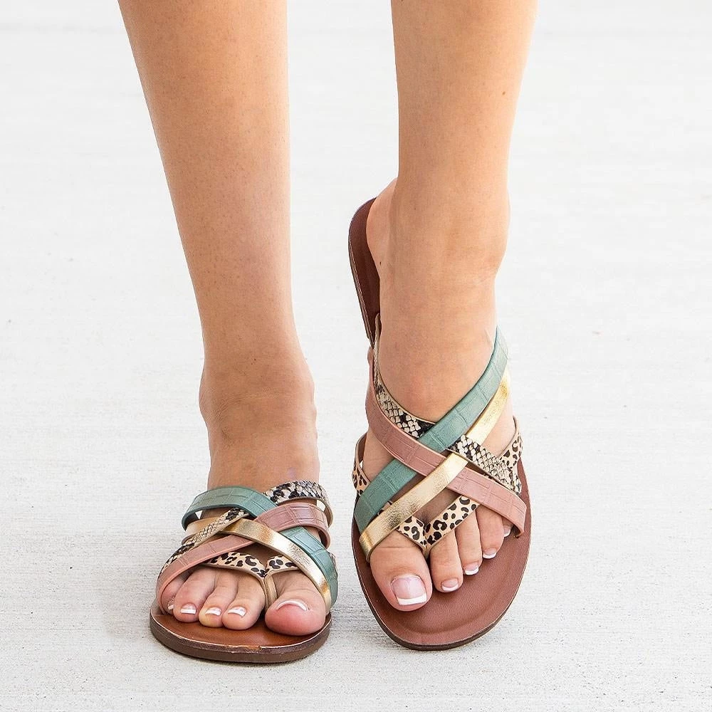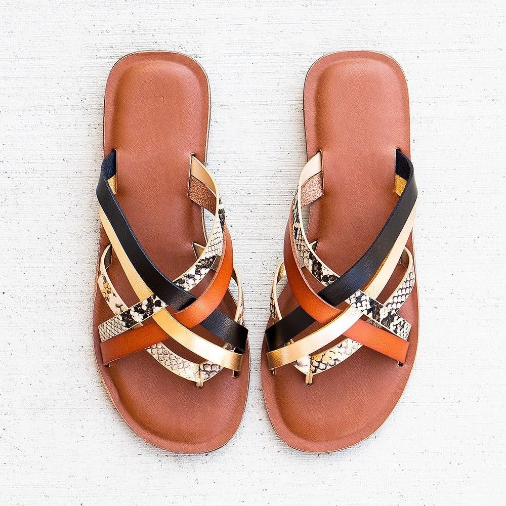 These bamboo Finest-04 sandals will be sure to turn any drab outfit into a fab one! They are crafted from a faux-leather material and feature five multi-colored straps crossing over one another. They have a thong-toe design with open-toe feature perfect for the summer. Lightly cushioned insoles allow for them to be worn comfortable all day long. pair with a printed long skirt and lantern sleeve top for a boho chic inspired fit!