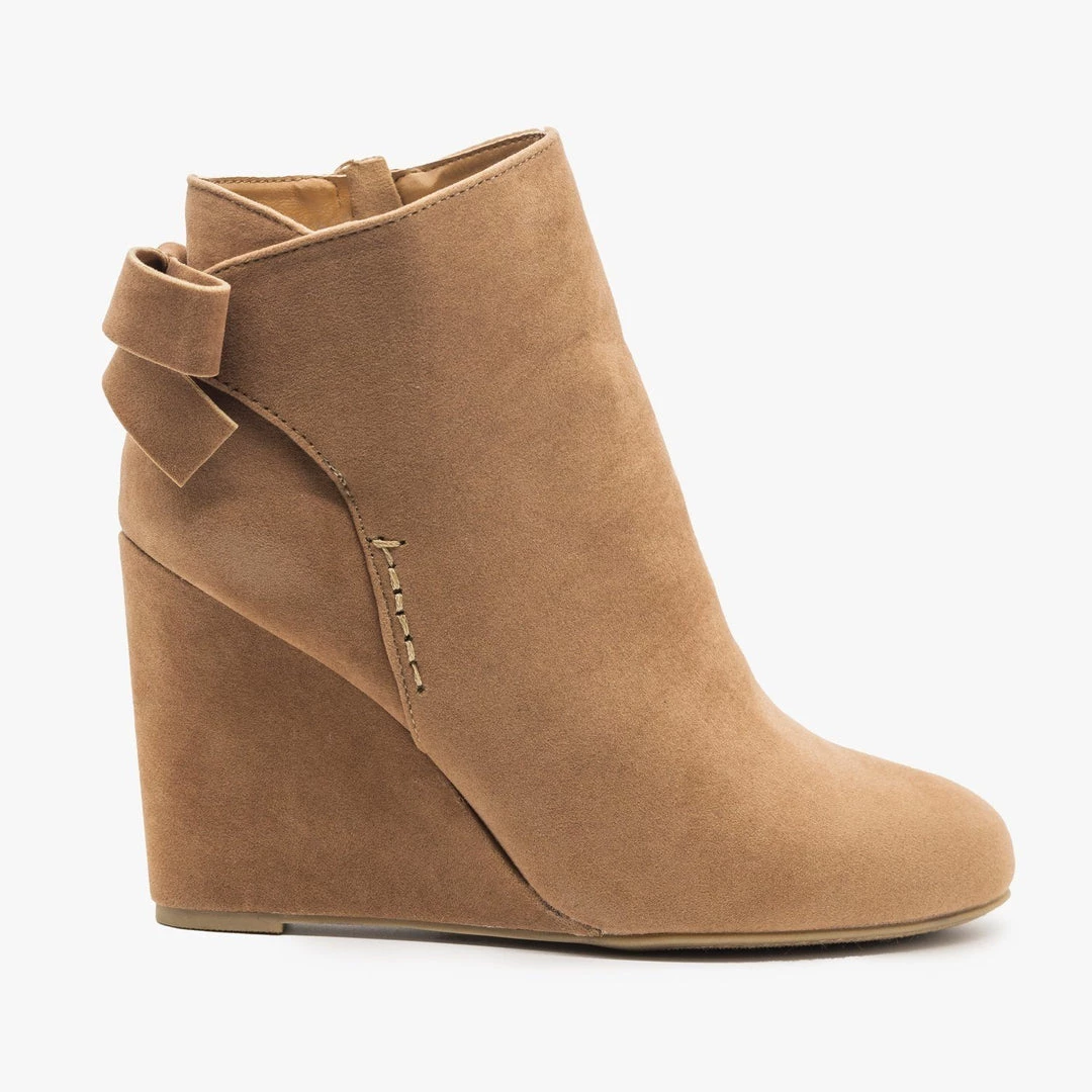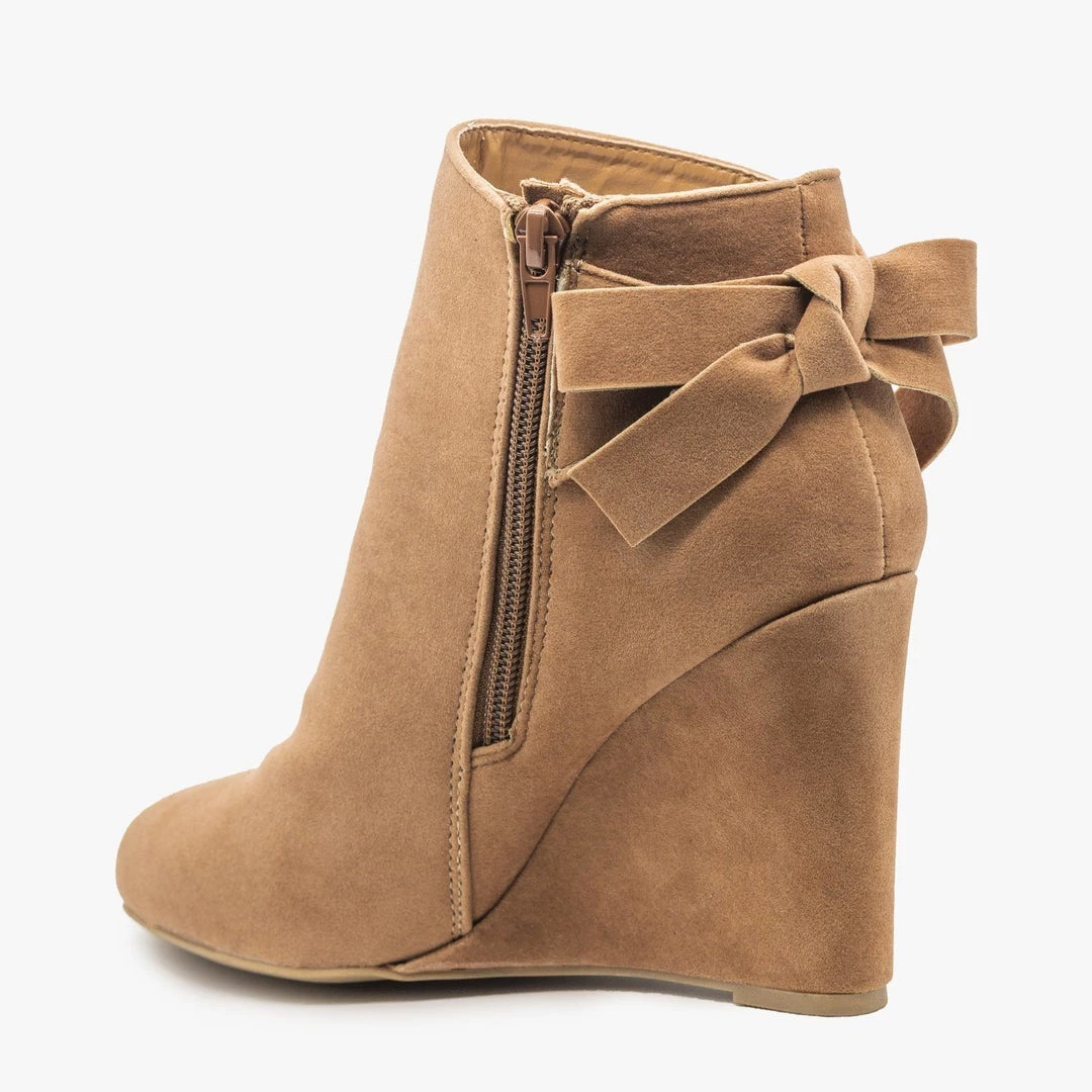 Bamboo Shoes Back Bow Bootie Wedges Newest Arrivals