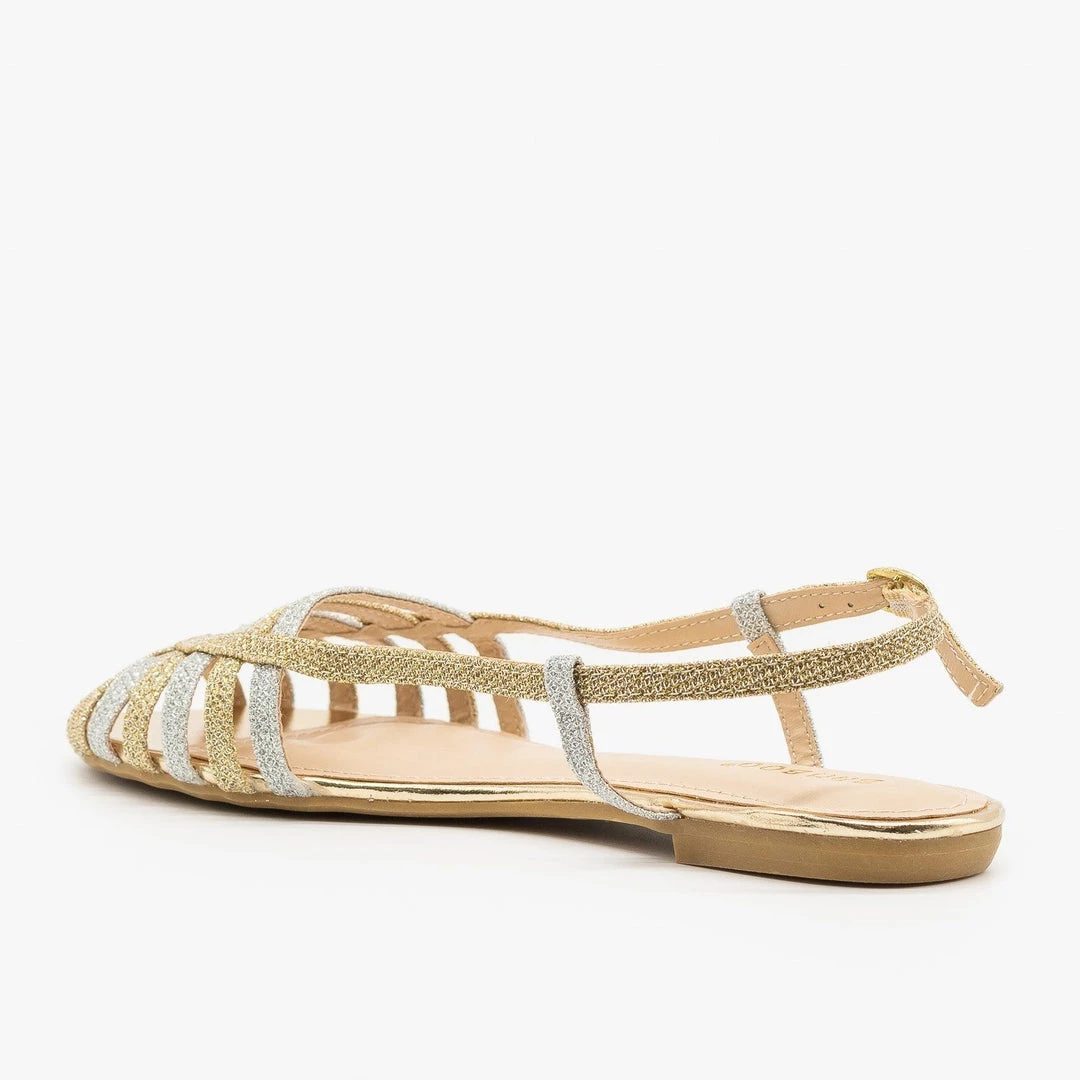 Slip into these adorable Bamboo Shoes Lynda-17 flats to put the perfect finishing touch on any cute outfit! Designed with faux leather, these beauties feature a low, 1/4″ heel, padded insole and a lovely rounded peep toe. The body of the shoe is crafted with thin straps woven and crossed over each other to give the shoe a basket-woven feel. The slingback ankle strap is clasped with a buckle that’s adjustable for the best fit. The silver and gold variations of this flat are sparkly, so if you want a little extra bling, this is the flat for you! Pair these flats with a denim skirt and a floral patterned top for a perfect Sunday brunch look! Made with all man-made/vegan materials and runs true to size.