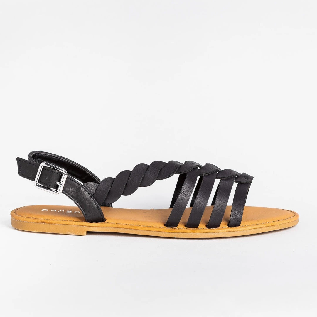 Slip into these Bamboo Shoes Shoreline-08 sandals to complete all your favorite outfits! Made out of faux leather, these sandals feature a gorgeous caged design with a braided accent running across the top of the shoe. The adjustable ankle strap also allows for easy on/off access and provides maximum support. You can wear these sandals with your favorite folded cuff denim shorts and a vintage band tee for a super cool and laid-back summer look! Made with all man-made/vegan materials.
