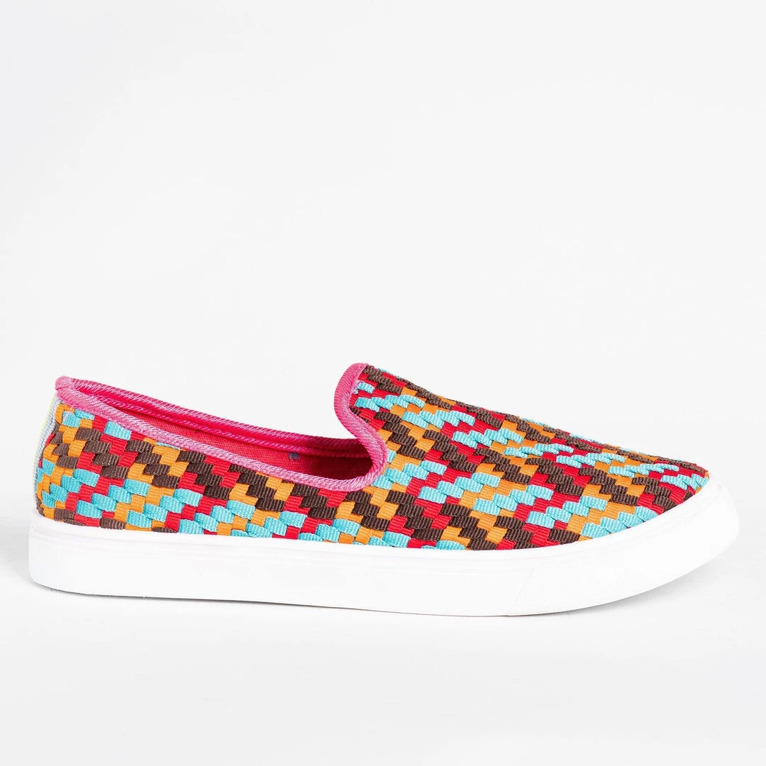 Add some color to your wardrobe with these Bamboo Shoes Parson-02 slip-on sneakers! These beautiful sneakers are made out of canvas material and feature a slip-on design for easy on/off access. The rubber sole makes these super comfy to wear all day long, while the gorgeous multi-colored basketweave design gives these shoes some extra style. Pair these shoes with some raw hem ankle jeans and a basic oversized tee for a cute and laid-back weekend outfit! Made with all man-made/vegan materials.