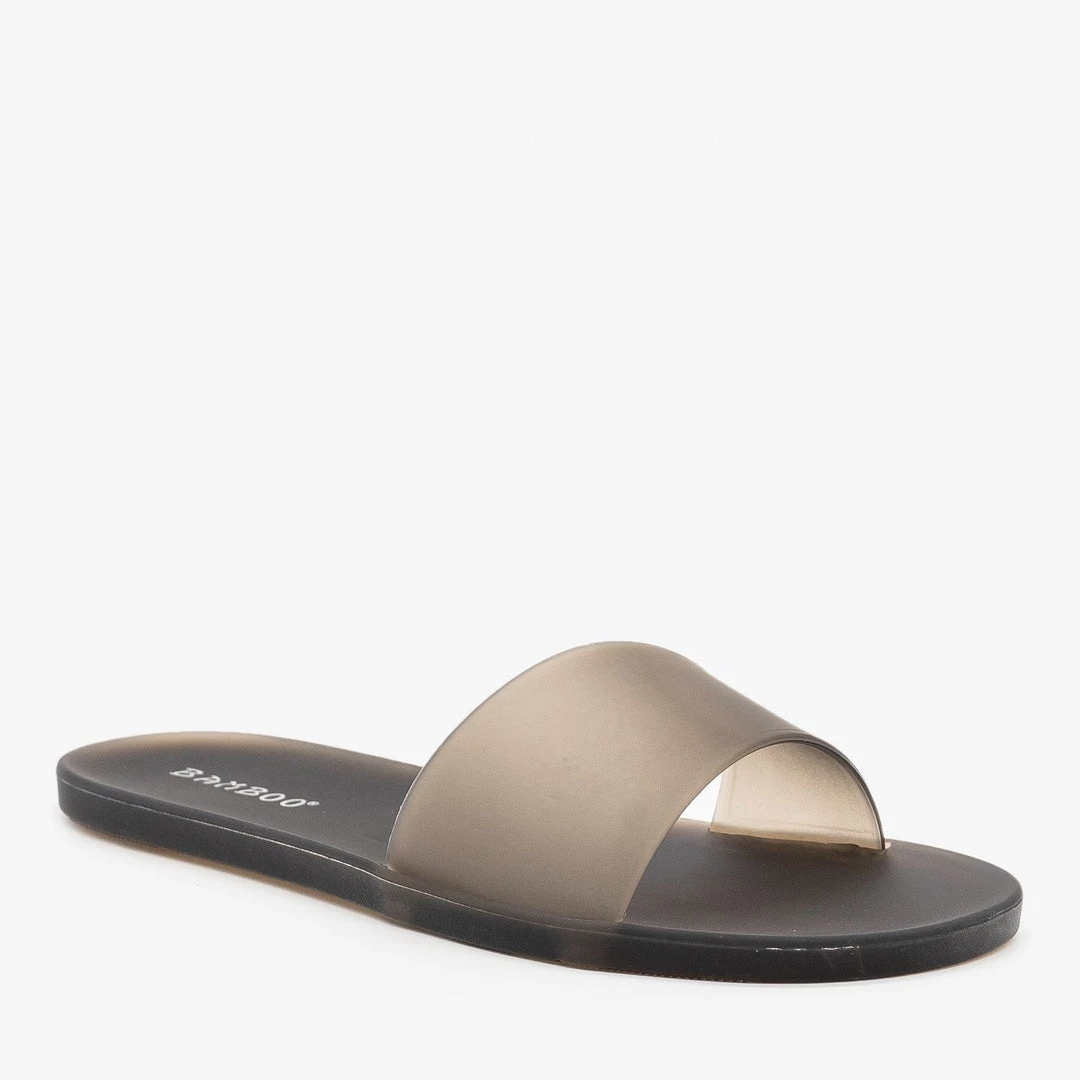 For a fun summer sandal, look no further than these Bamboo Shoes Simple-02 jelly sandals! These cute flats are made of a jelly material, perfect for days at the beach or the pool, and have a soft matte finish. A single wide band crosses the foot for a super simple open toe design. Available in several bright colors, these sandals can go with just about any look! Pair them with distressed boyfriend jeans and a bodysuit for a comfy cute outfit! Made with all man-made/vegan materials and runs true to size.