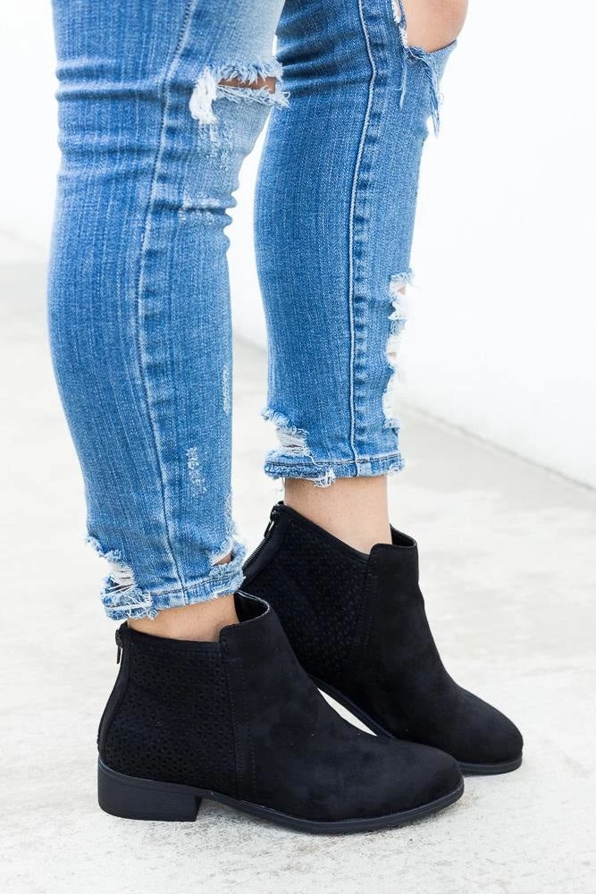 Get swept off your feet with the Bamboo Shoes Saber-03S ankle booties! These adorable booties are made out of faux suede and feature a 1.5″ stacked heel and a lovely almond-shaped toe for ultimate style and comfort. A back ankle zipper also makes these shoes great for easy on/off wear. Finishing off the shoe is a darling laser cut triangle design on the heel of the shoe. These booties will go great with any outfit you wear! Pair these with a shoes with a light cardigan layered over a flowy maxi dress for a chic boho look! Made with all man-made/vegan materials.