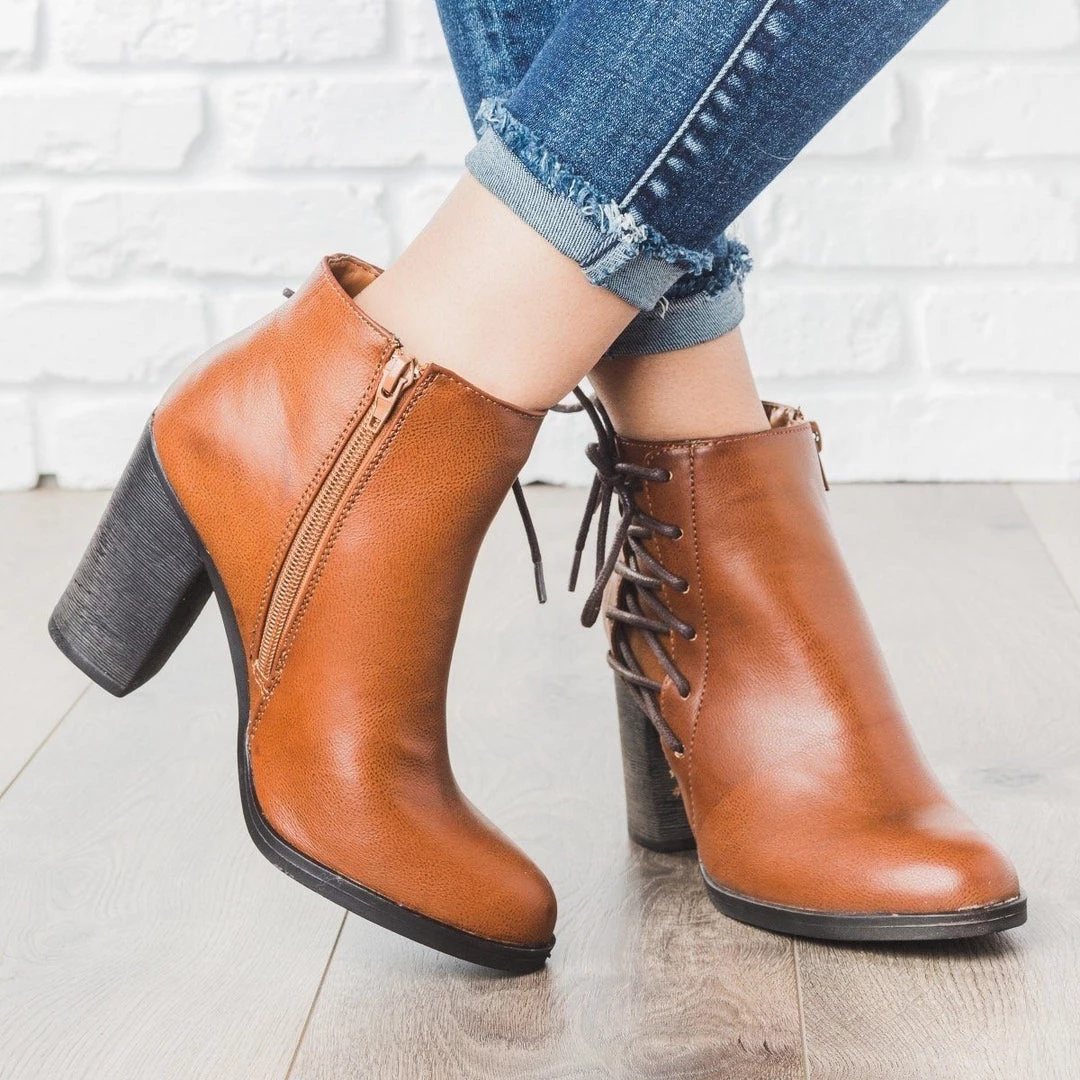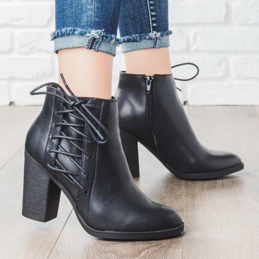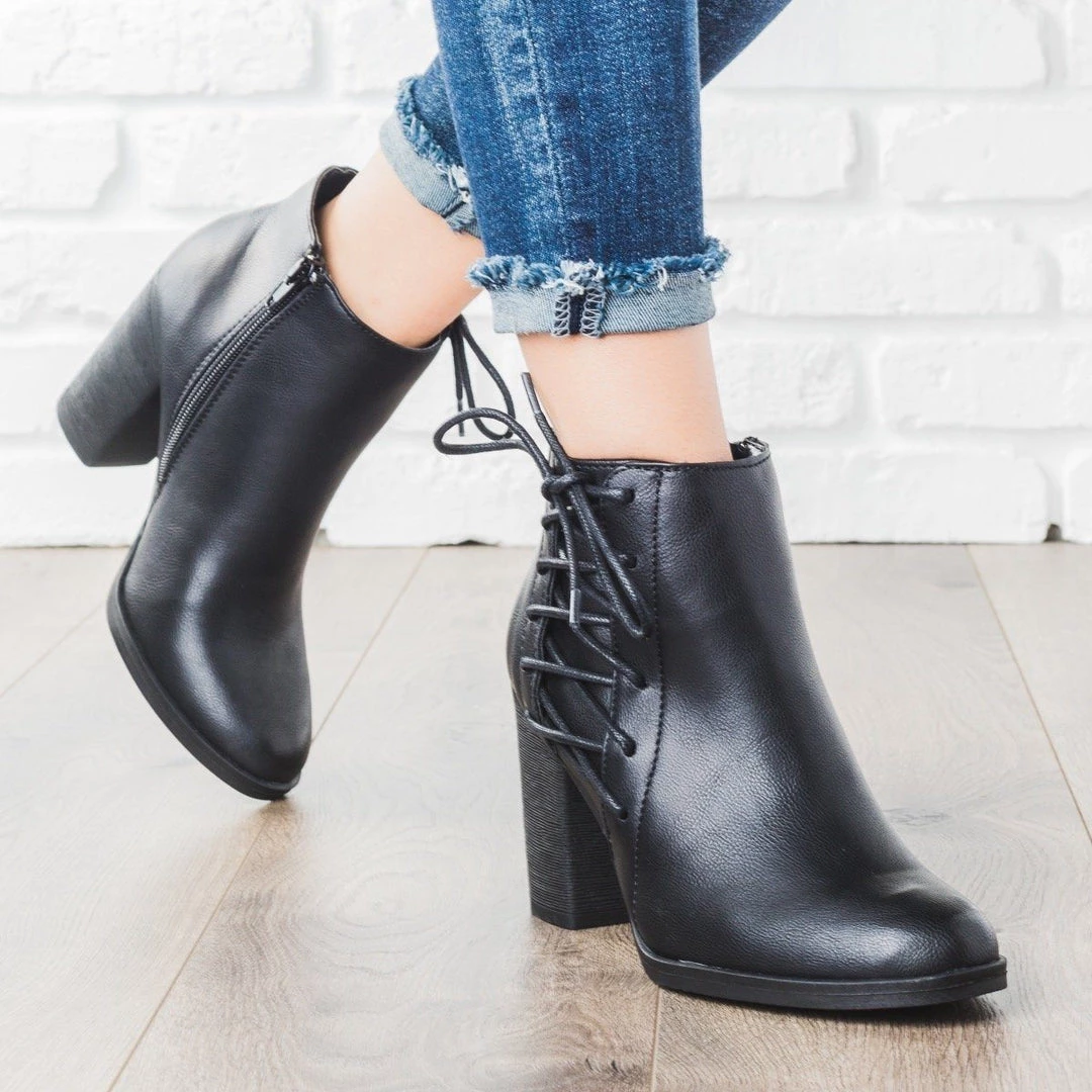 Bamboo Shoes Lace-up Chunky Heel Booties