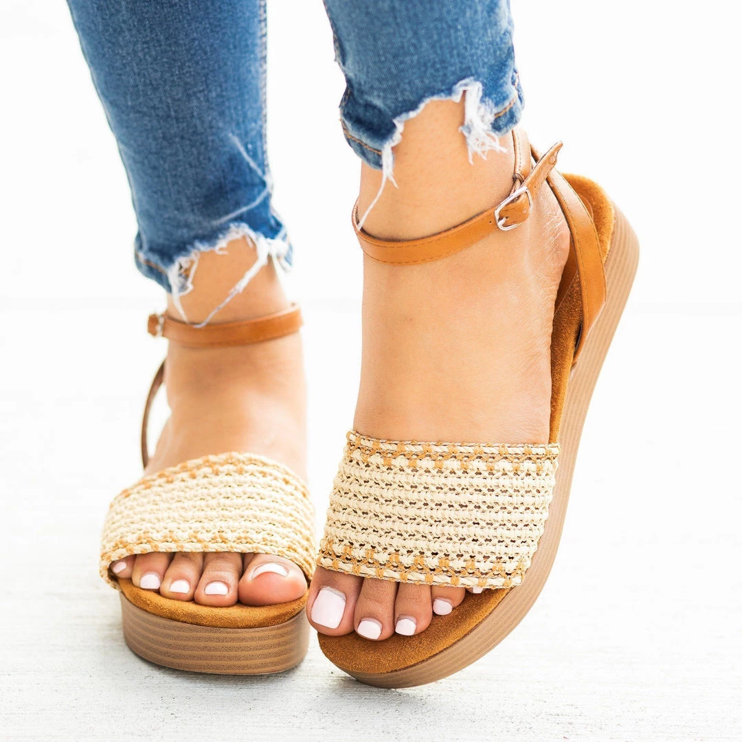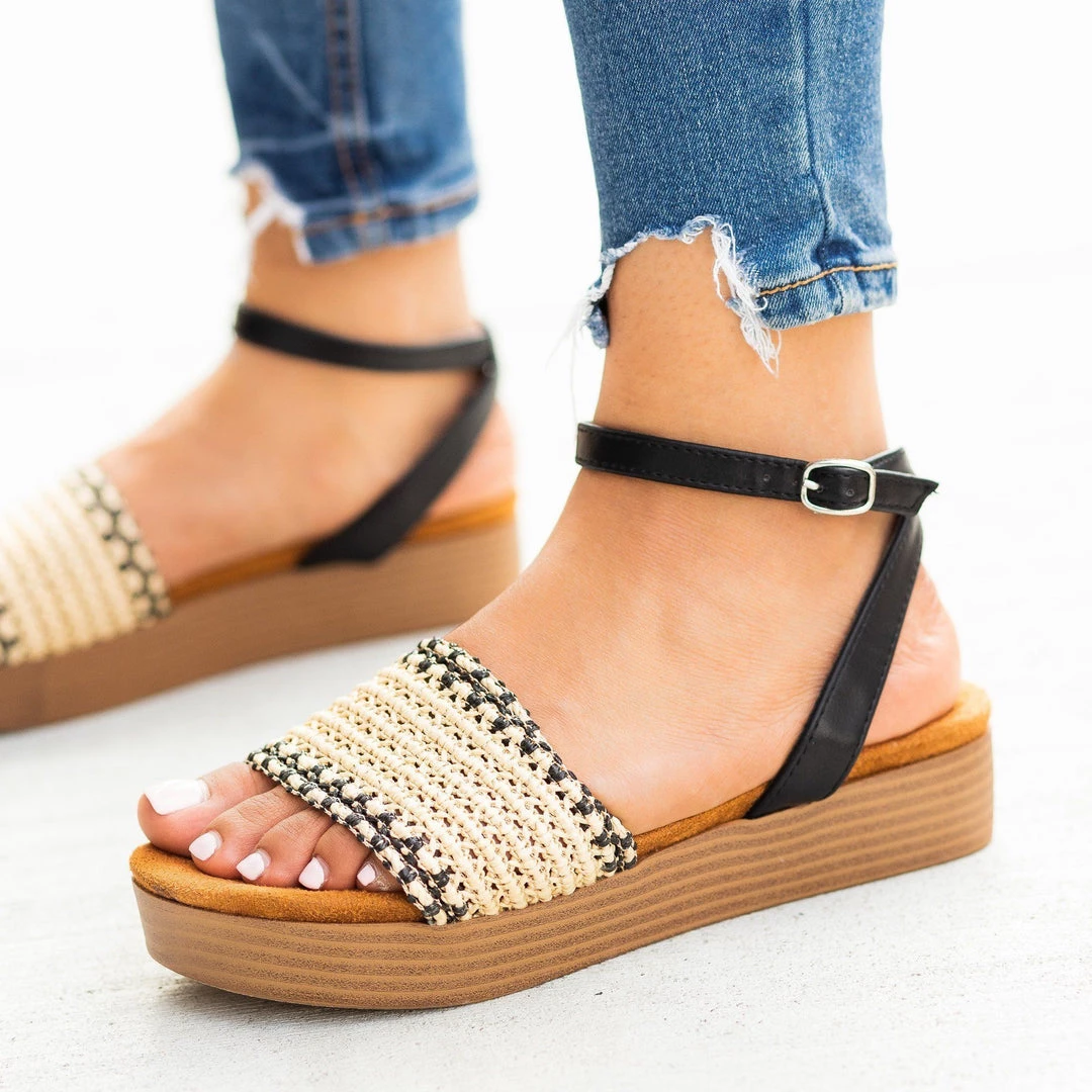 Say hello to these beautiful Bamboo Shoes Gigi-08 flatform sandals! These sandals feature a gorgeous basketweave design band and an adjustable faux leather ankle strap for easy on/off access. The 1.25″ stacked flatform gives these shoes some major style and just a bit of height. You can wear these sandals with some raw hem ankle jeans and a cropped tube top for the perfect summer outfit! Pair these flatform sandals with a denim jumper dress and a bandeau for a super cute weekend look! Made with all man-made/vegan materials.