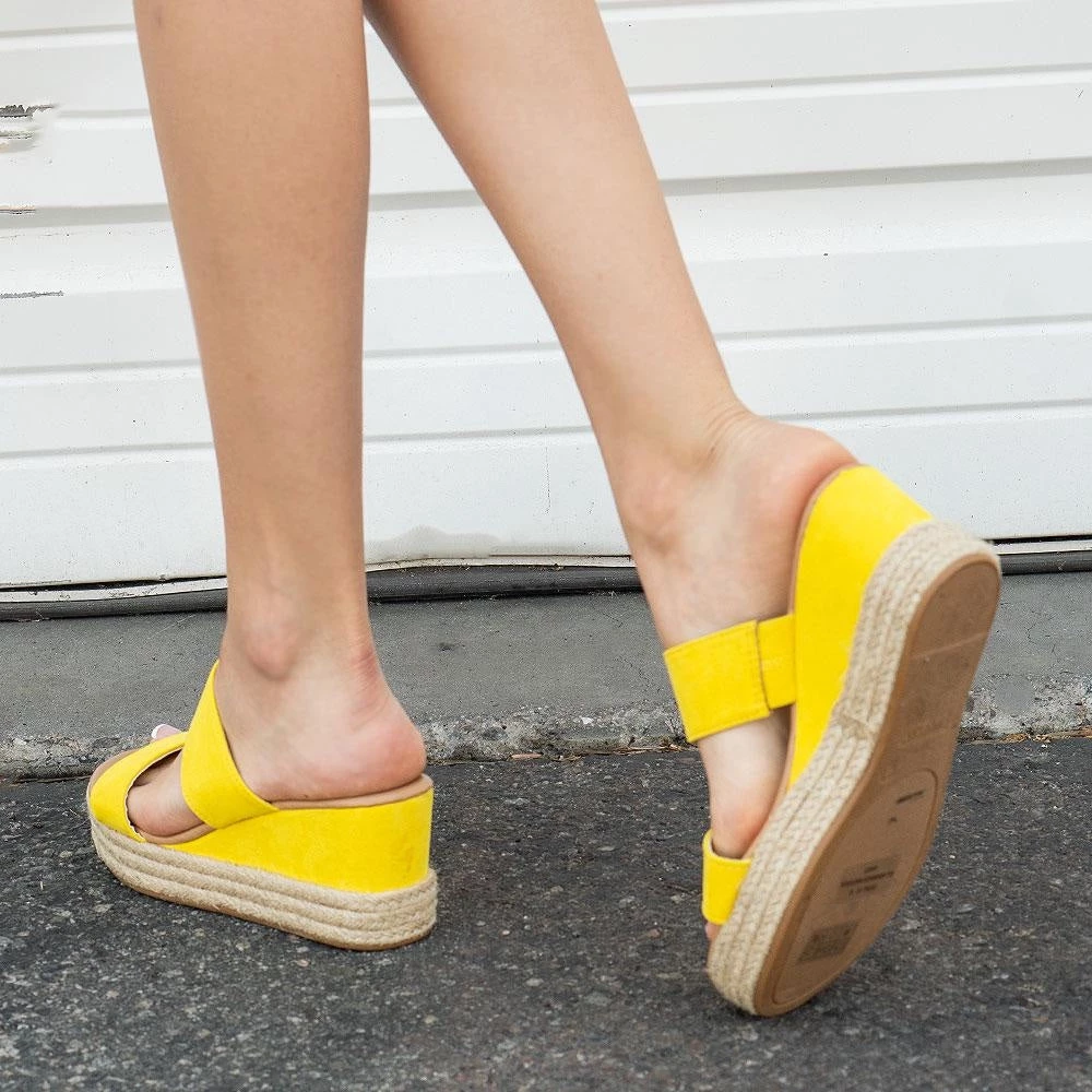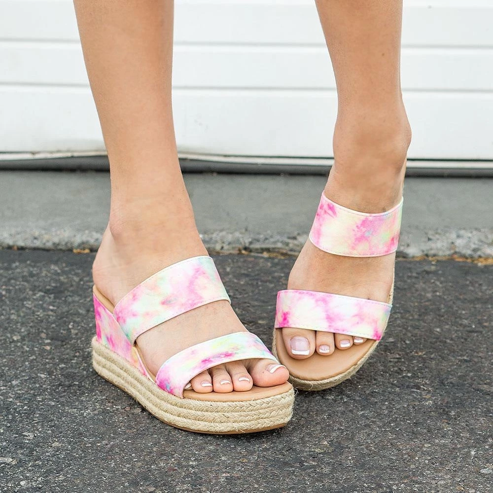 Our Bamboo Fatal-12 will make the perfect accent piece to all your stylish outfits! They feature a thick-double strap design with slip-on feature. Both straps lay across the front of the foot for easy on and off wear. A two-tone, half espadrille wedge finishes off the look of these gorgeous shoes. Pair with white jeans and solid color top and let the shoes speak for themselves!Â