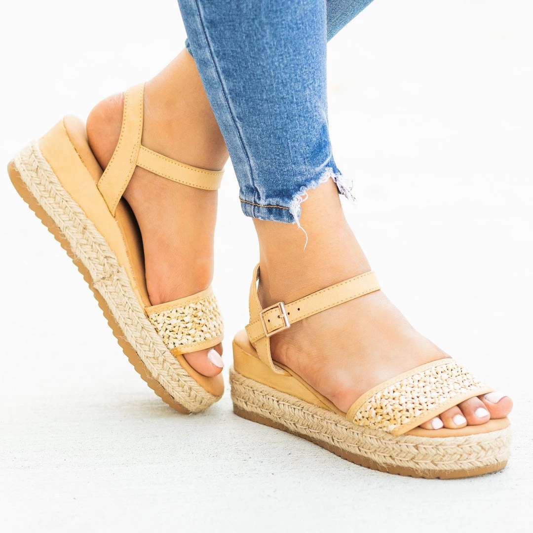 Turn heads with these beautiful Bamboo Shoes Leading-07 flatform sandal wedges! Made with a gorgeous woven basket material, these sandals feature a 1″ espadrille flatform sole and a 1″ wedge for added height. The adjustable ankle strap provides easy on/off access. while the ridged rubber sole adds extra support. Pair these sandals wedges with a button up denim mini skirt and a ruffled off-the-shoulder cropped top for a super cute summer outfit! Made with all man-made/vegan materials.