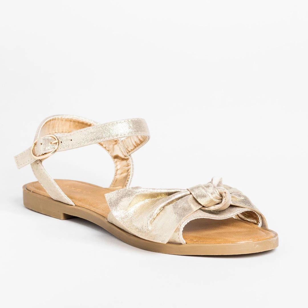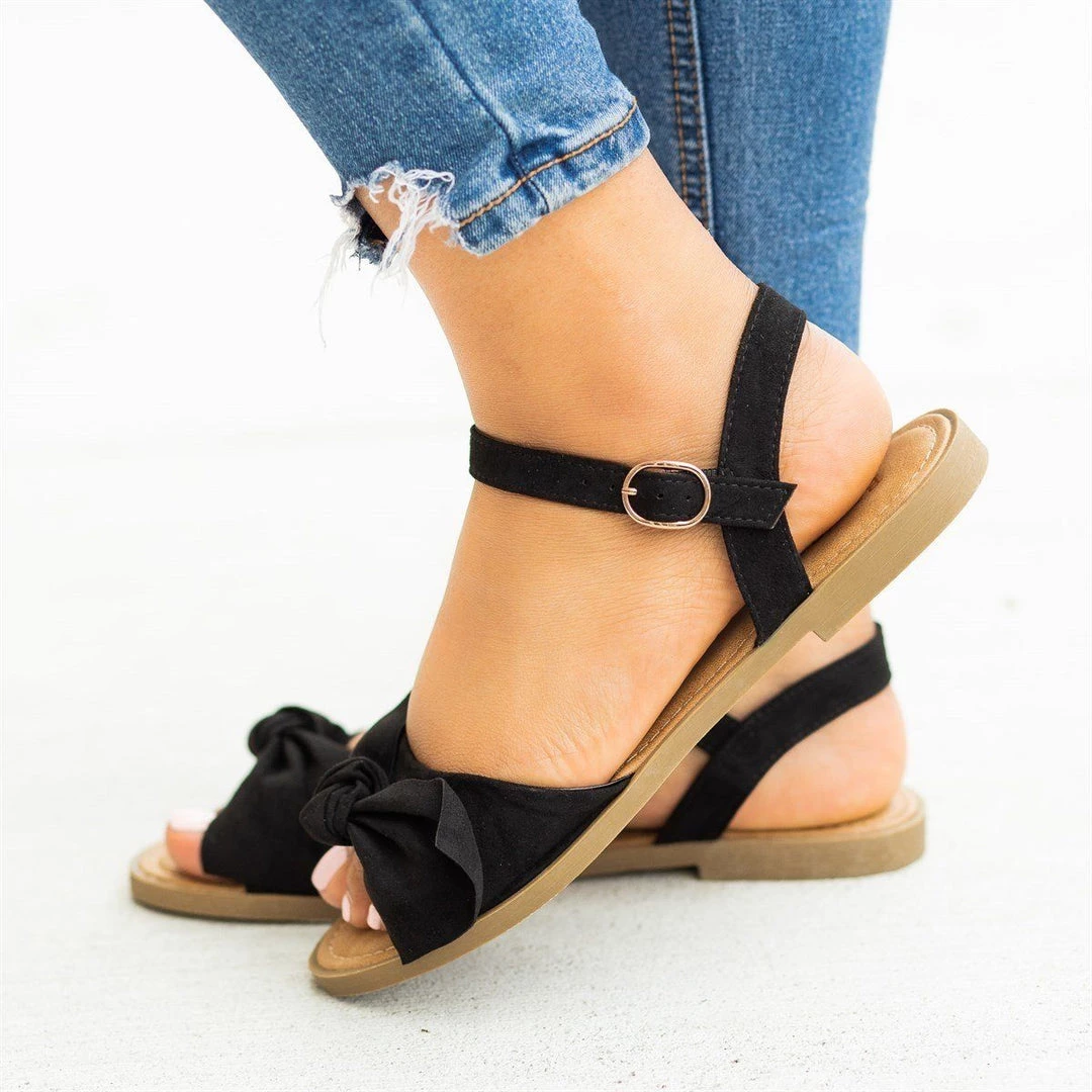 Fall in love with these adorable Bamboo Shoes Hippie-84 sandals! Beautifully crafted out of faux suede or metallic fabric material (gold and rose gold), these sandals feature an adjustable ankle strap for easy on/off access and a super trendy open-toe design. The lovely bow tie accent gives these shoes a super cute look. Available in a variety of colors, these sandals will go great with a fun and flirty sundress and dainty accessories for the most gorgeous summer outfit! Made with all man-made/vegan materials.