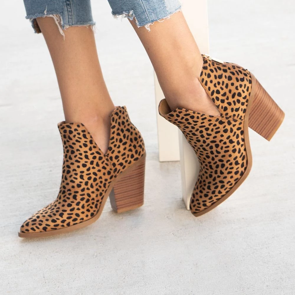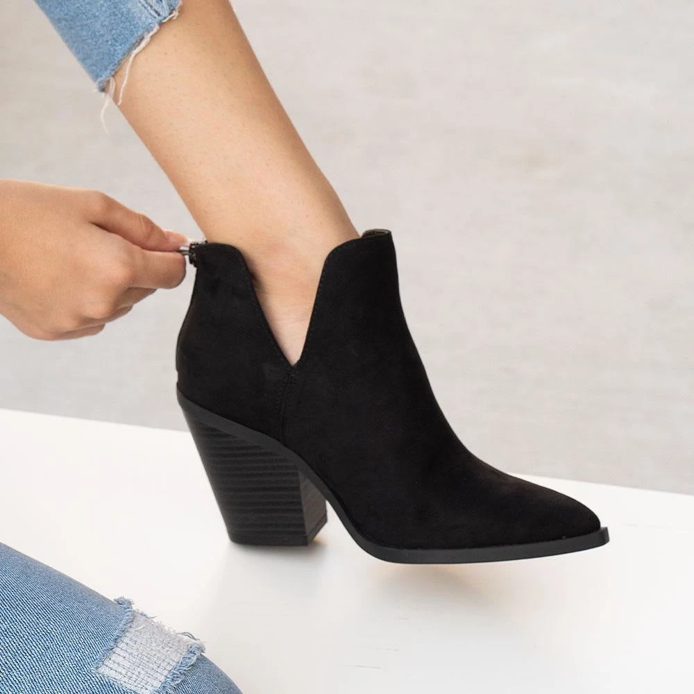 Our Bamboo Uostream-01 booties are a shoe so versatile you’ll have it in your closet all year round. This gorgeous boot features faux-leather or faux-suede material that covers the entire body of the shoe. A trendy side V-cut gives this everyday bootie character while a pointed squared toe keeps it chic and edgy. A zipper on the back of the heel allows for easy slip on and approx. 3.25″ angled block heel makes them easy and comfortable to walk in. These booties rise to bout ankle length which makes them a perfect fit for just about any style of jeans. Pair these booties with medium washed distressed jeans and flowy white top for a cute western fit!Â