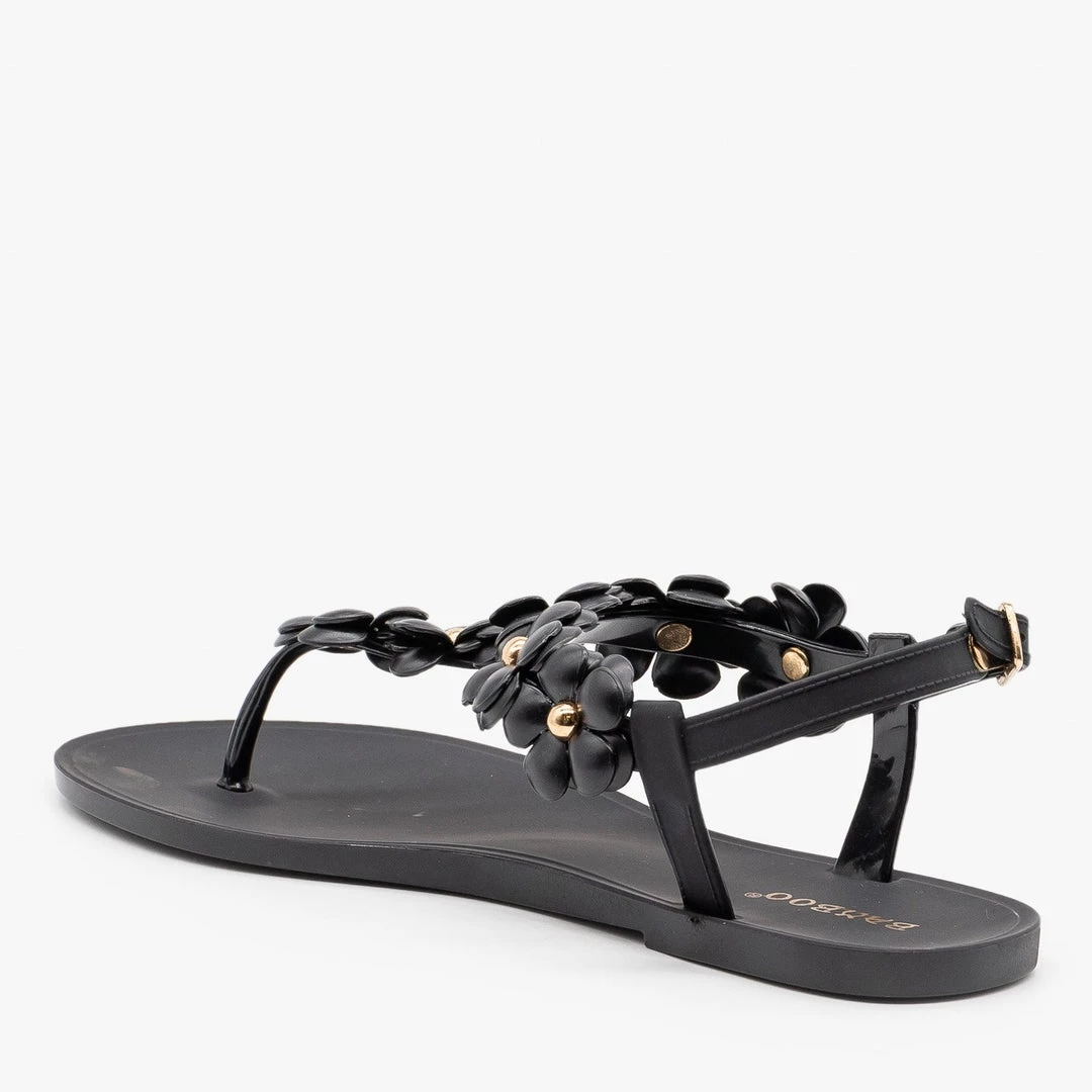 Put some spring in your step with these gorgeous floral Bamboo Shoes Viver-20S sandals! Designed from a soft jelly material, these sandals feature a flat heel, a thong-toe and slingback design and a buckle that adjusts for the perfect fit. The straps are adorned with 3D flowers with shiny metallic centers, giving these sandals a gorgeous girly finish! Pair them with a skater skirt and a tucked in lightweight tee with a bomber jacket for the perfect spring look! Made with all man-made/vegan materials and runs true to size.