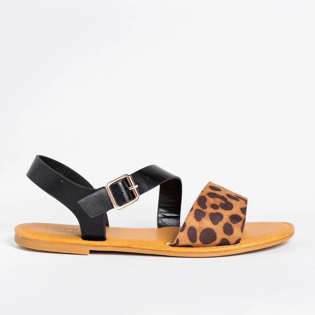 Make a fashion statement in these lovely Bamboo Shoes Shoreline-13 two-toned sandals! Made out of faux leather and faux suede, these sandals feature a trendy two-toned design and an adjustable ankle strap for easy on/off access. The beautiful diagonal strap gives these shoes an extra hint of flair, while the thick front strap is right on trend. Wear these sandals with some high-waisted ankle jeans and a cropped tank for a super cute summer outfit! Made with all man-made/vegan materials.