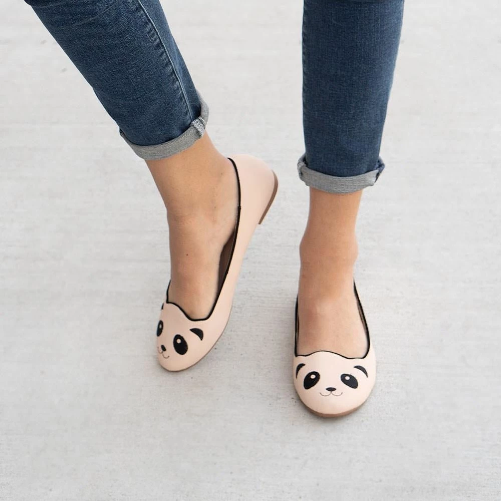 Add some life to your wardrobe with our Bellamarie Amanda-11 character flats! These slip-on styled flats feature a darling embroidered animal face with a closed front toe that goes well with anything from jeans and a cute graphic t-shirt or all-black outfit. Slip them on and off with ease and bring character to any outfit!Â