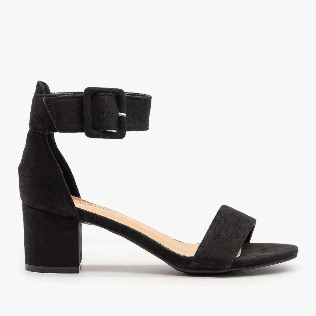 Step out in style with these gorgeous Bella Marie Shoes Jean-70 mid-heels! Beautifully crafted out of faux suede, these heels feature a 2″ block heel and a trendy open-toe design. The buckled ankle strap is also adjustable, making these shoes super comfortable and easy to wear. Pair these sandals with just about anything-from high-waisted ankle jeans to a bodycon dress, these shoes are the perfect finishing touch to any fashionable look! Made with all man-made/vegan materials.
