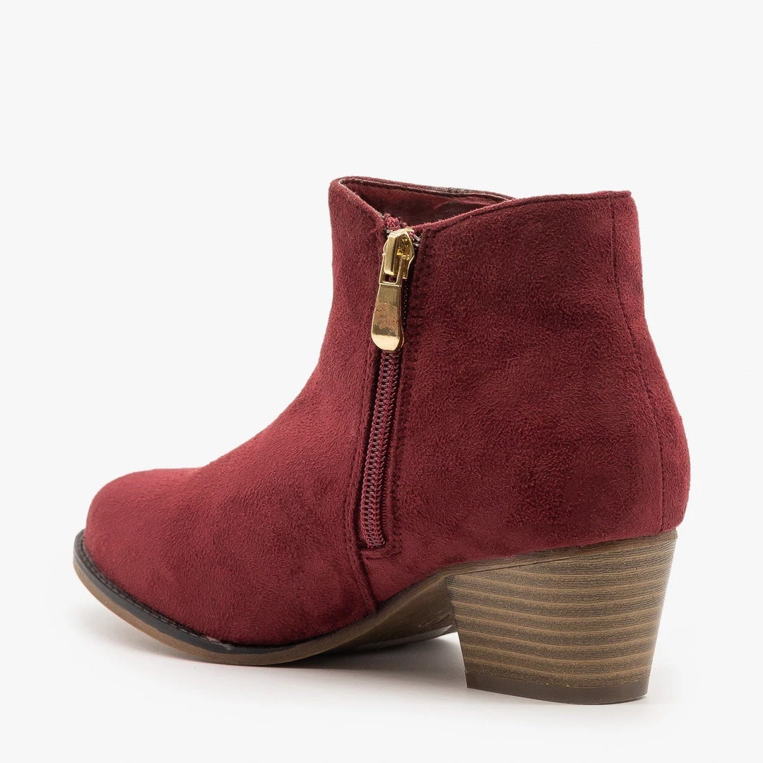 Looking for some cute ankle booties that are both timeless and fashion-forward? Look no more, because the Bella Marie Shoes Juliet-10 ankle booties are just what you need! These adorable booties are made of faux suede and have a rounded toe design. The ~1.5″ block heel gives you a bit of height while ensuring maximum style and comfort, and the side zipper makes it easy to wear them. These shoes feature a simple but cute fringe detail on the side of the shoe, giving this classic look a little something extra. Pair these cuties with your favorite ankle jeans, or with a cute denim overall dress for the perfect fall outfit! Made with all man-made/vegan materials and fits true to size.