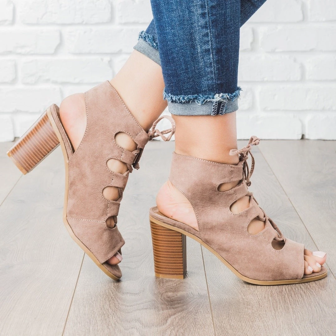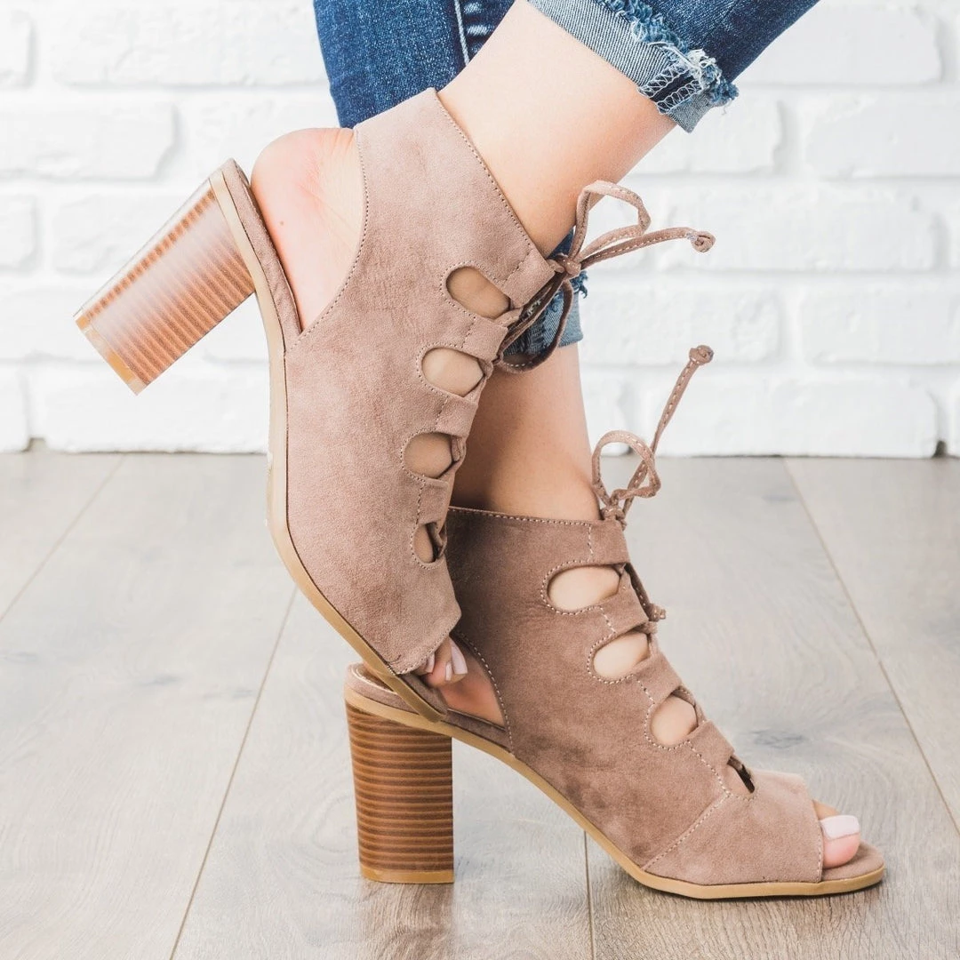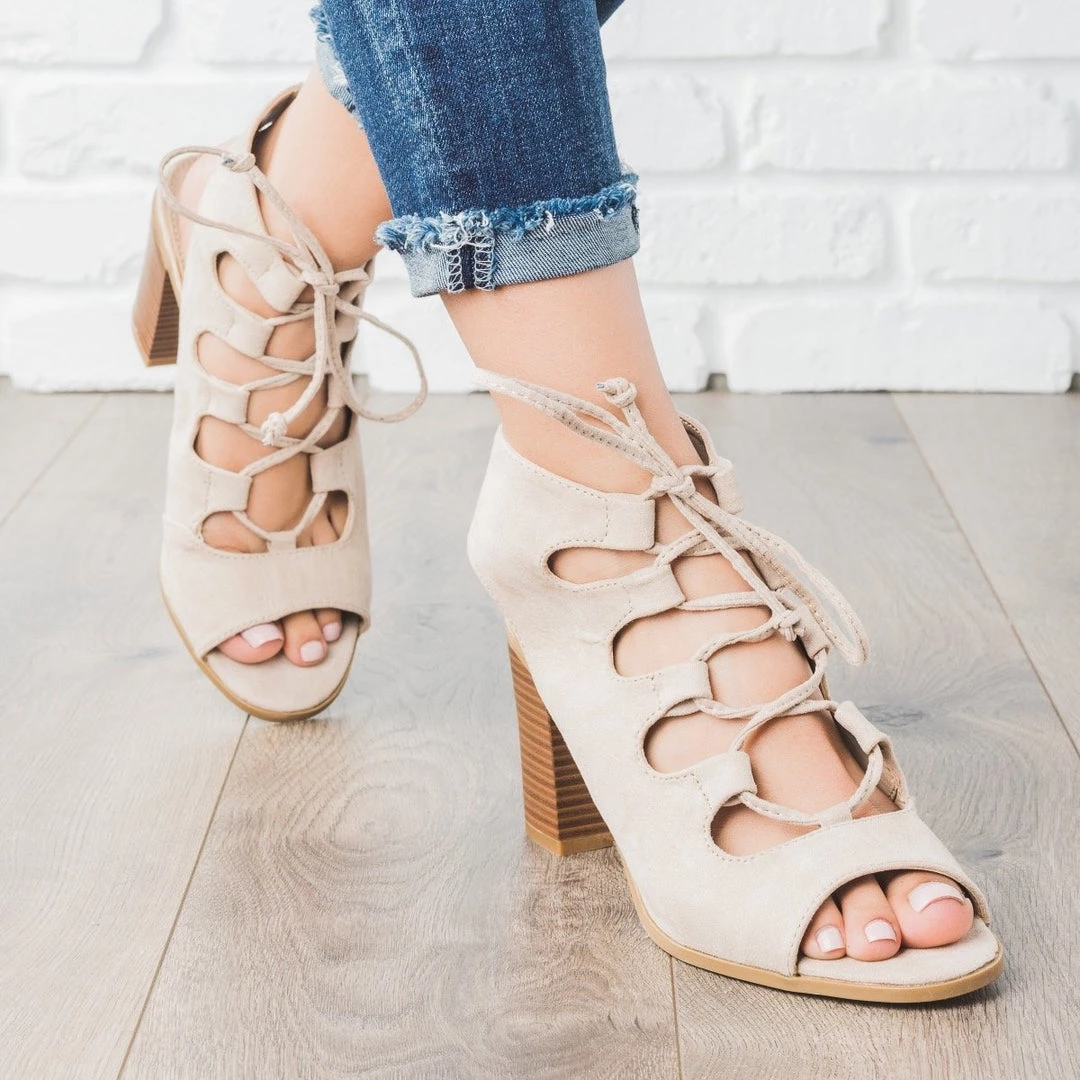 Bella Marie Lace-up Peep Toe Chunky Heels