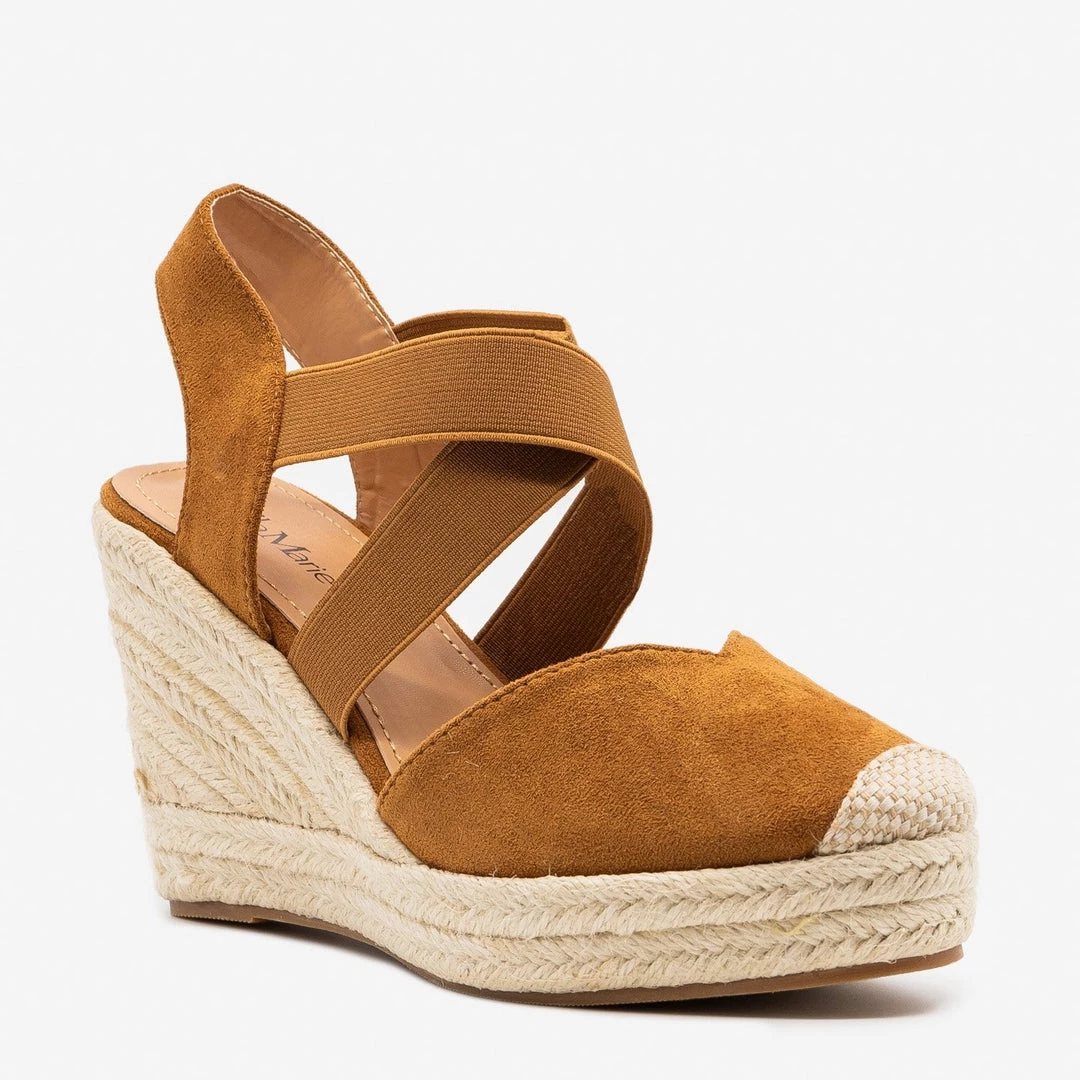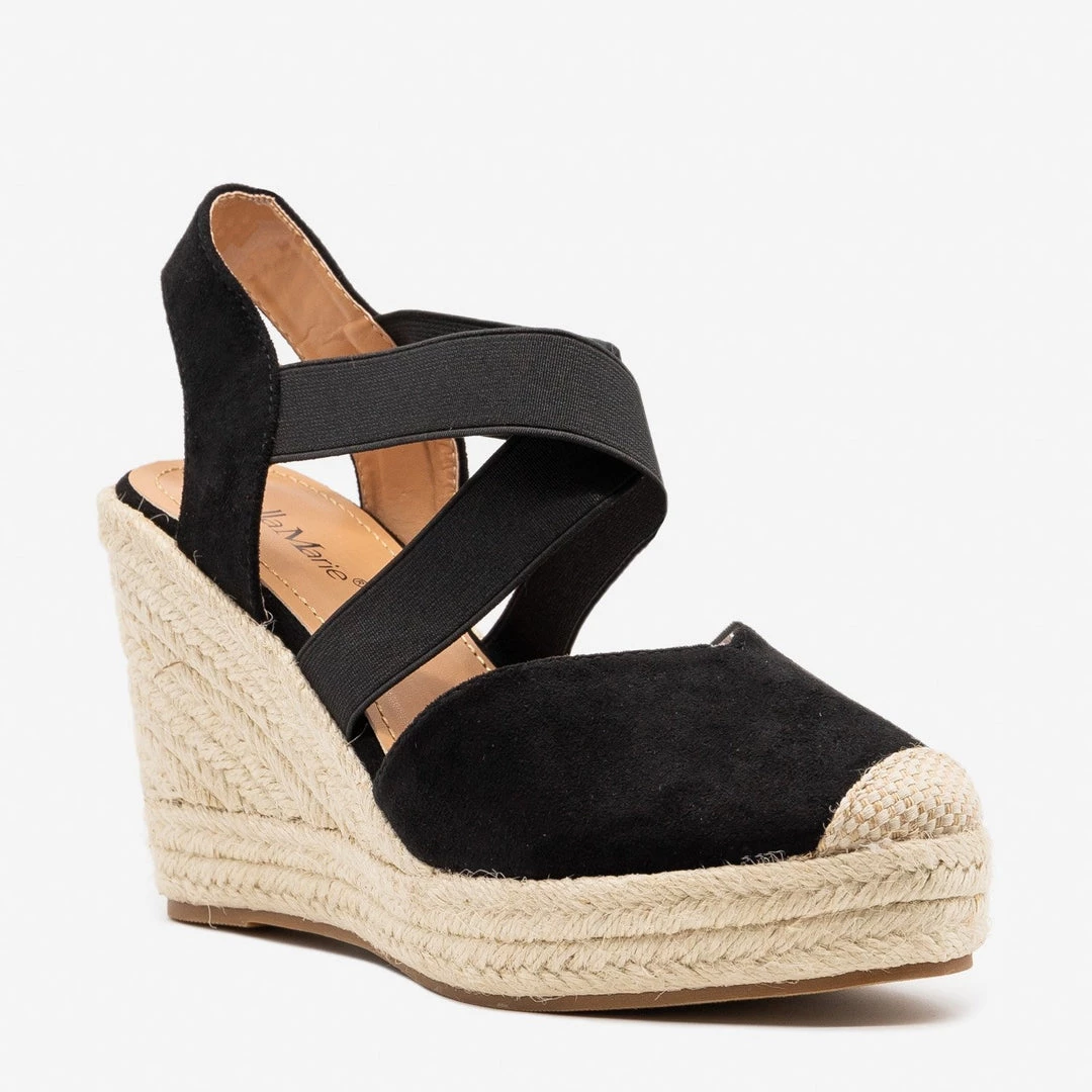 Bella Marie Newest Arrivals Cap Toe Elastic Espadrille Wedges