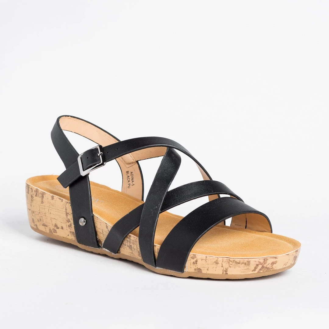 Slip into something more comfortable with the Bella Marie Shoes Adina-5 sandal wedges! Made out of faux leather, these sandal wedges feature a strappy criss cross design and an adjustable ankle strap for practicality. The slingback style ankle strap also provides extra comfort and support, while the comfy insoles and 1.5″ cork wedge makes these shoes great to wear all day long. Pair these sandal wedges with a flowy sundress and a floppy hat for the cutest summer outfit! Made with all man-made/vegan materials.