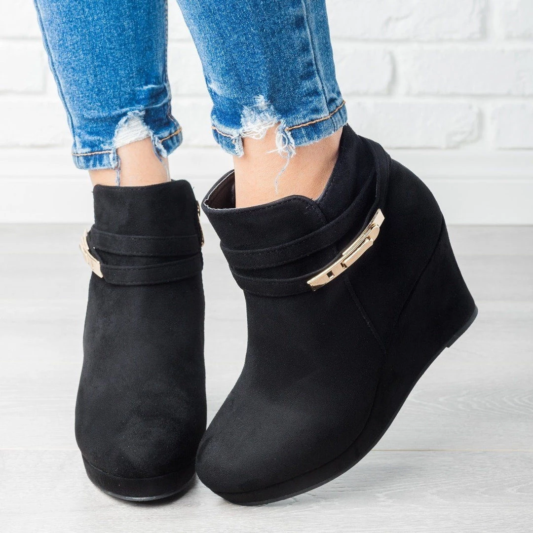 Take the road less traveled with the Bella Marie Shoes Respect-10 wedge booties! These adorable ankle booties feature a ~3″ wedge heel, adding a bit of height and sass to these already lovely shoes! Made out of faux suede, these shoes also feature a rounded toe and an interior side zipper, perfect for when you need to slip something on when you’re on-the-go. The stap detail that wraps around the ankle is fastened by a thin gold buckle, adding just a touch more style to these shoes. Available in a variety of colors, you can wear these shoes with anything! Mix textures and wear these booties with some faux leather leggings and a chunky knit turtleneck sweater for a look that’s chic, fashionable, and ready for the cold weather months! Made with all man-made/vegan materials and runs a full size small.