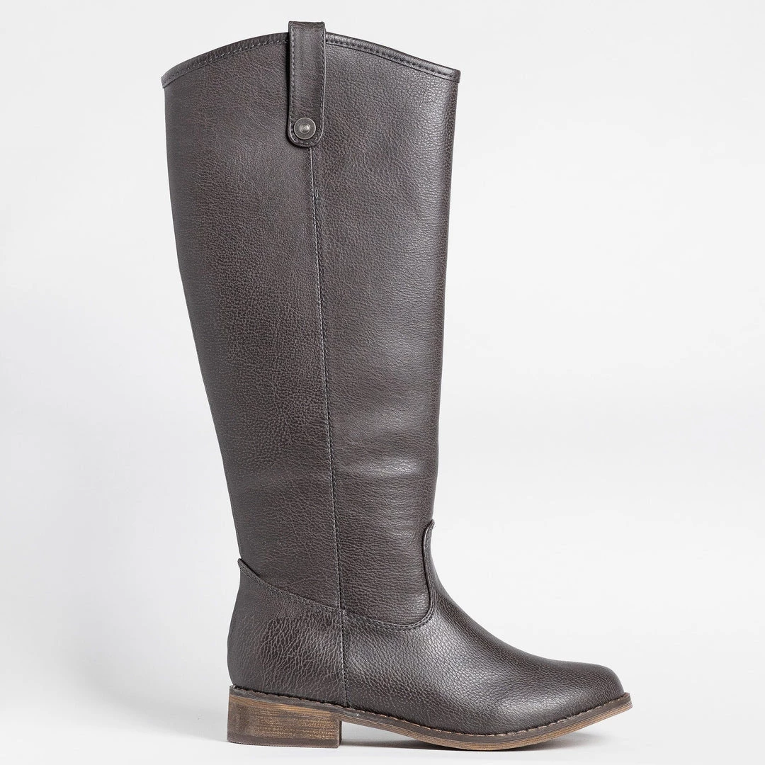 The Breckelle’s Shoes Rider-18 is a beautifully crafted tall riding boot that finished just below the knee. This shoe features a rounded toe, sleek body, accent straps at the top fastened by simple studs and a side zipper. These are completed with faux leather and a 1.5” block heel. Finish your outfit in style with these gorgeous boots made to stun. The simple design makes these a classic that will never go out of style! Made with all manmade/vegan materials and runs true to size.