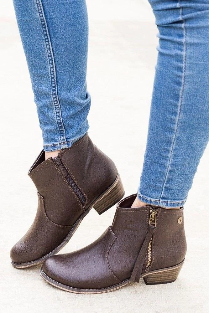 Add some western flare to your closet with these Breckelles Dorado-11 cowgirl inspired boots! They are crafted from a faux-leather material and rise to meet the ankle. They have a decorative outer zipper with accent tassel and a small heel. A classic rounded toe finishes up the look of these western inspired boots. Pair with denim jeans and a simple T!