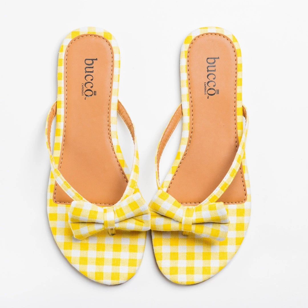 Life is a walk in the park with these adorable Bucco Shoes 52-103 slip-on sandals! Made with a comfortable canvas material, these sandals feature an easy-to-wear slip-on style and a classic thong-toe design. The gingham design gives these sandals a super cute look while the lovely bow tie accent adds an extra dash of flair. You can wear these sandals with just about anything from ankle jeans to a flowy sundress for the perfect picnic outfit! Made with all man-made/vegan materials.