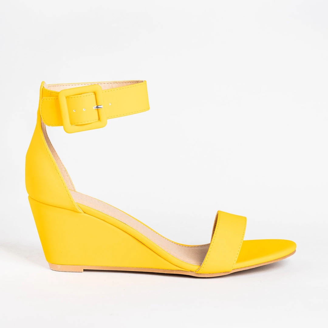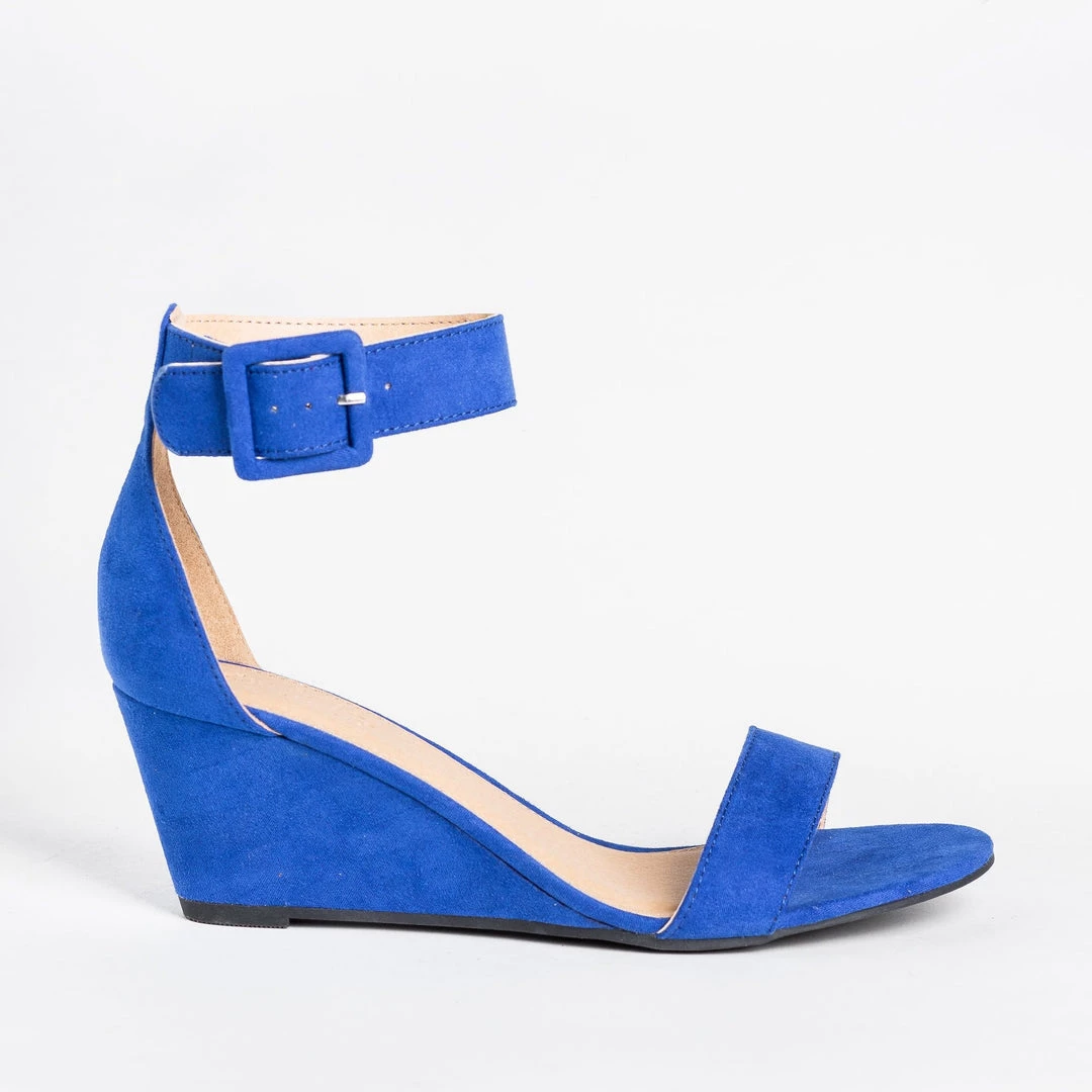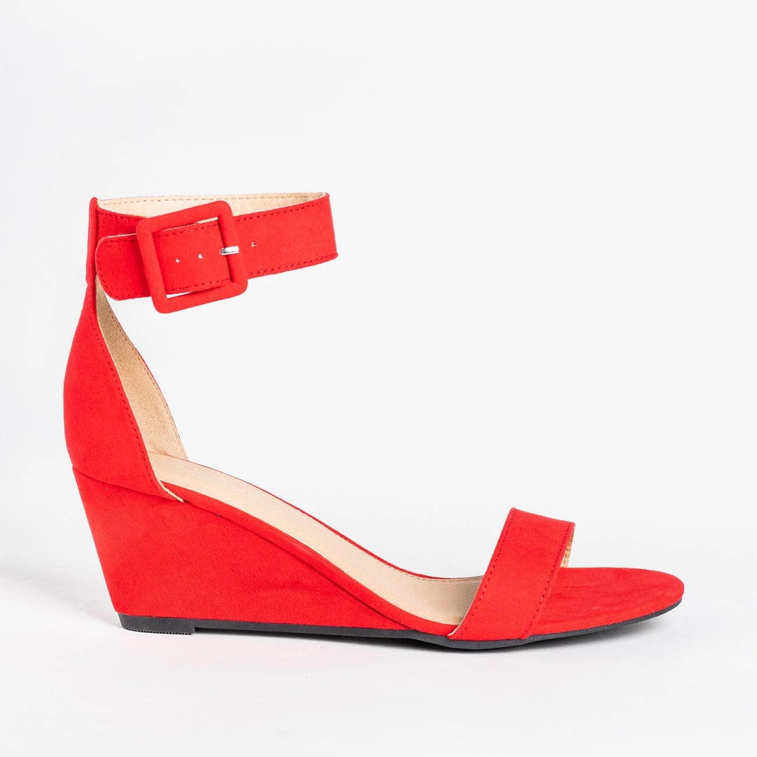 Add some color to your days with these CR Shoes Gail wedges! Beautifully crafted out of faux suede (mustard, red, and cobalt blue) or faux leather (black and nude), these wedges feature an adjustable ankle strap for support, comfort, and easy on/off access. The adorable open-toe design is right on trend, while the 2.5″ wedge gives these shoes just a bit of height. You can wear these wedges with just about anything from jeans to sundresses! Made with all man-made/vegan materials.