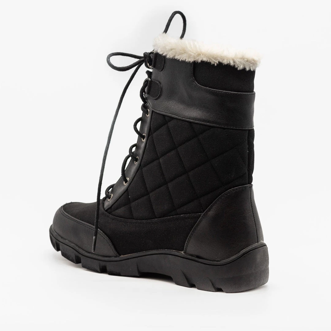 Welcome the cold weather with these Chase & Chloe Shoes William-6 snow boots! Crafted out of faux leather, these snow boots feature a classic lace-up style and an adorable quilted design for some added texture and style. The faux fur interior makes these boots perfect and cozy to wear all day long, while the ridged rubber sole provides extra support. Wear these boots with some jeans and a warm peacoat for an outfit that will have you ready to make some snow angels! Made with all man-made/vegan materials.
