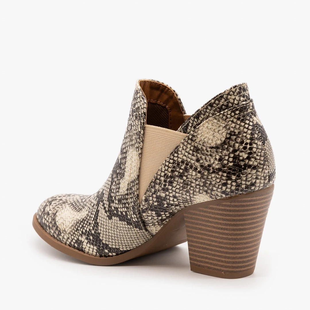 City Classified Shoes Newest Arrivals Chic Snake Print Slip On Booties