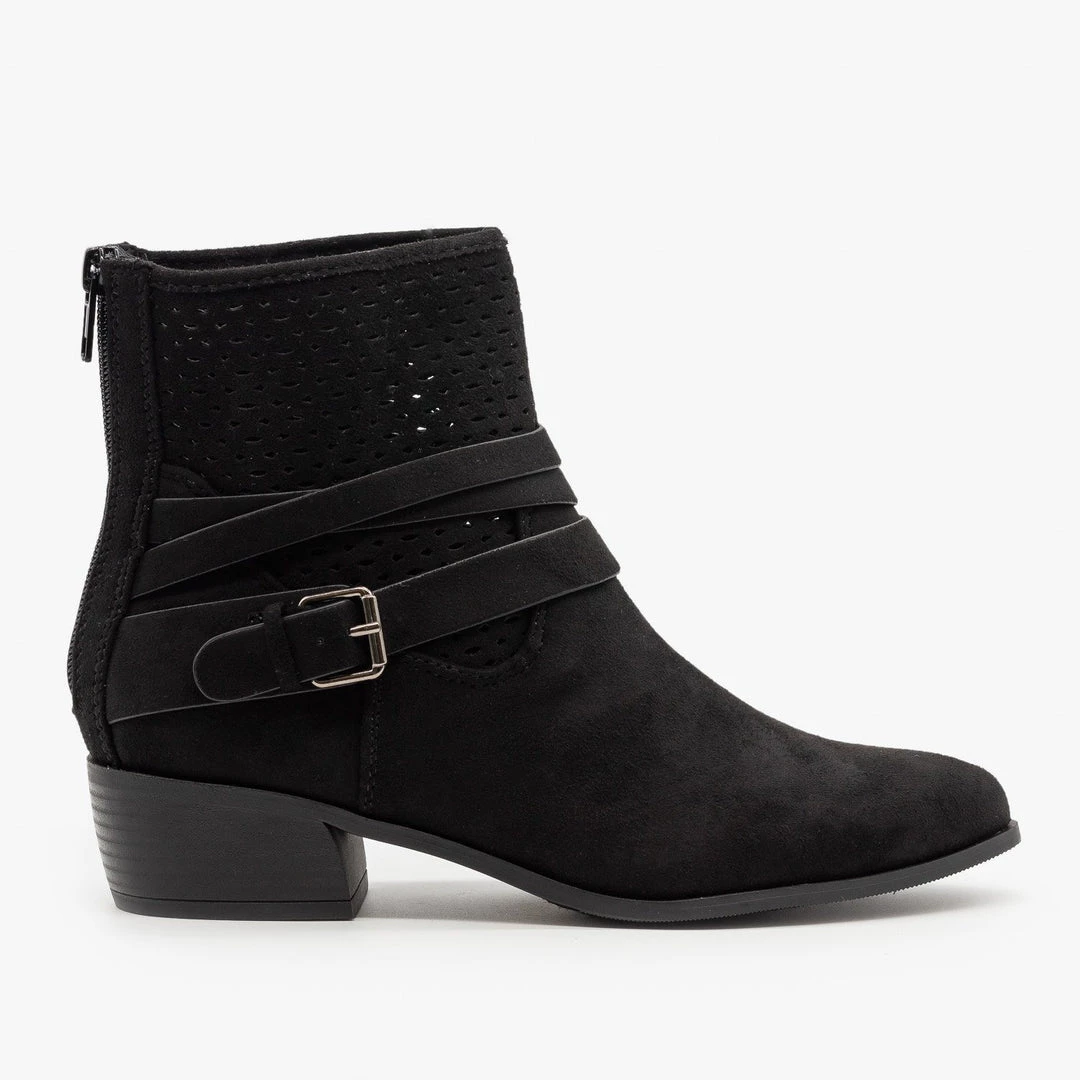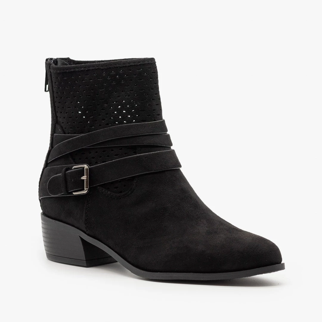 City Classified Shoes Newest Arrivals Perforated Strappy Ankle Booties FINAL SALE