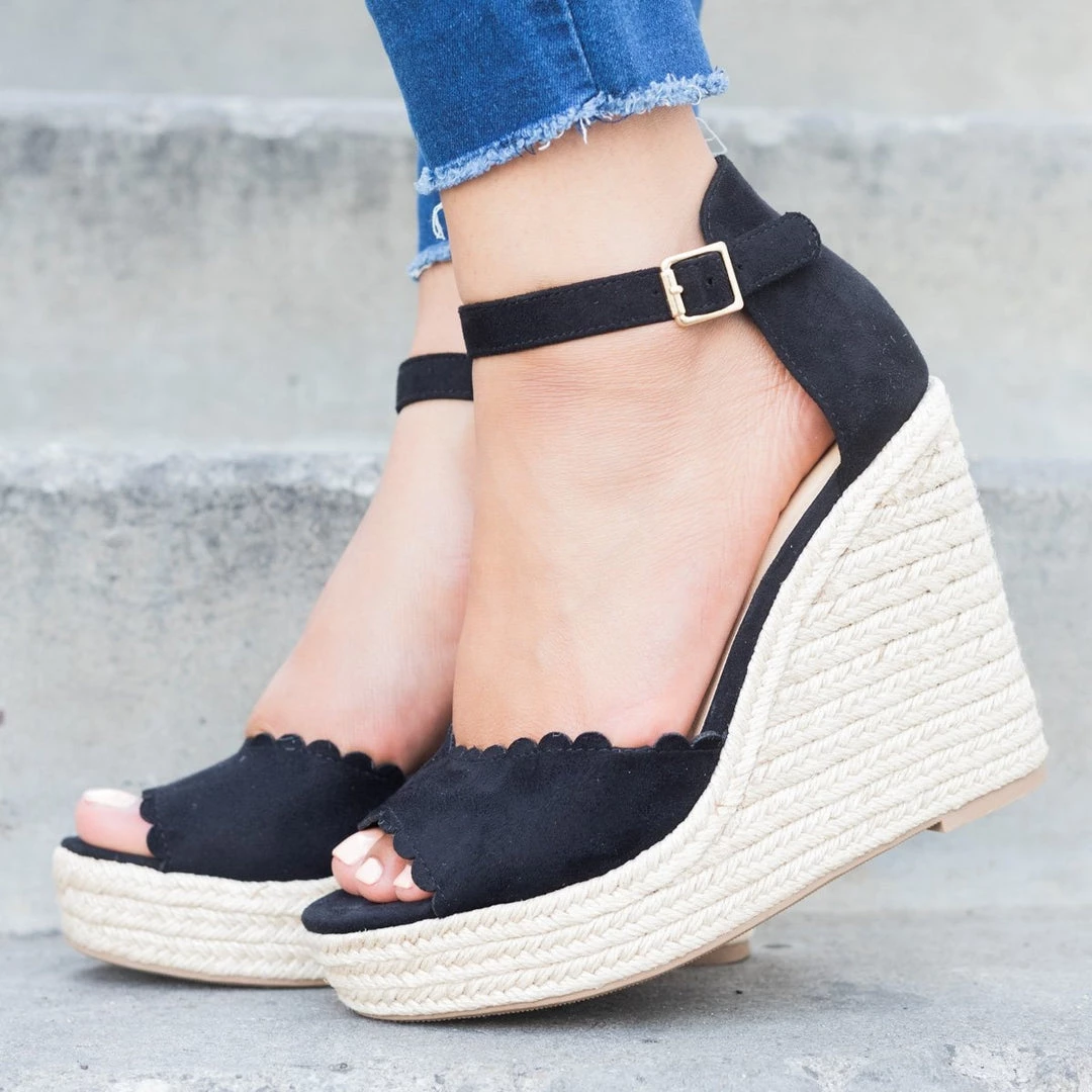Delicious Shoes Newest Arrivals Chic Scalloped Espadrille Wedges