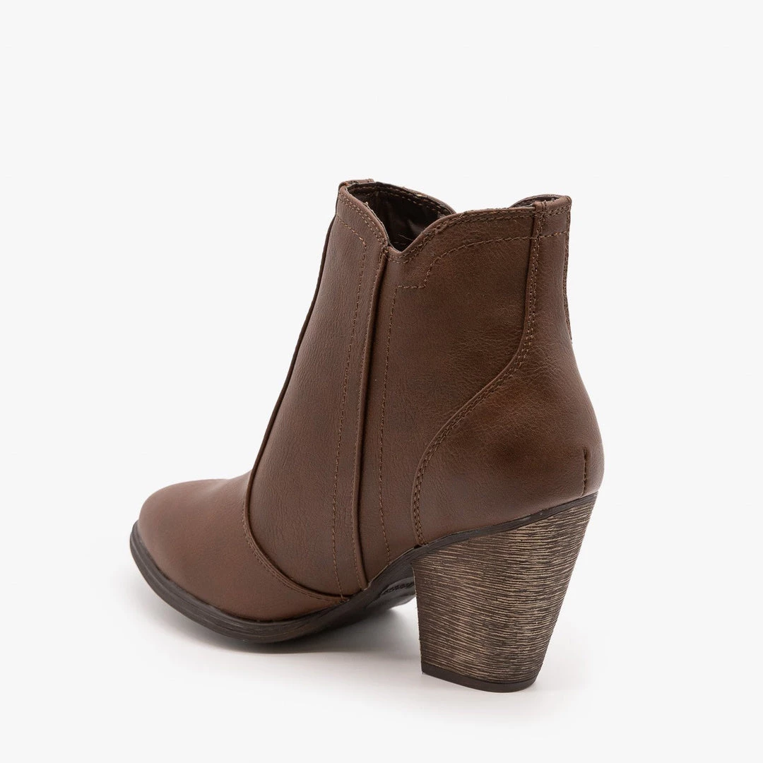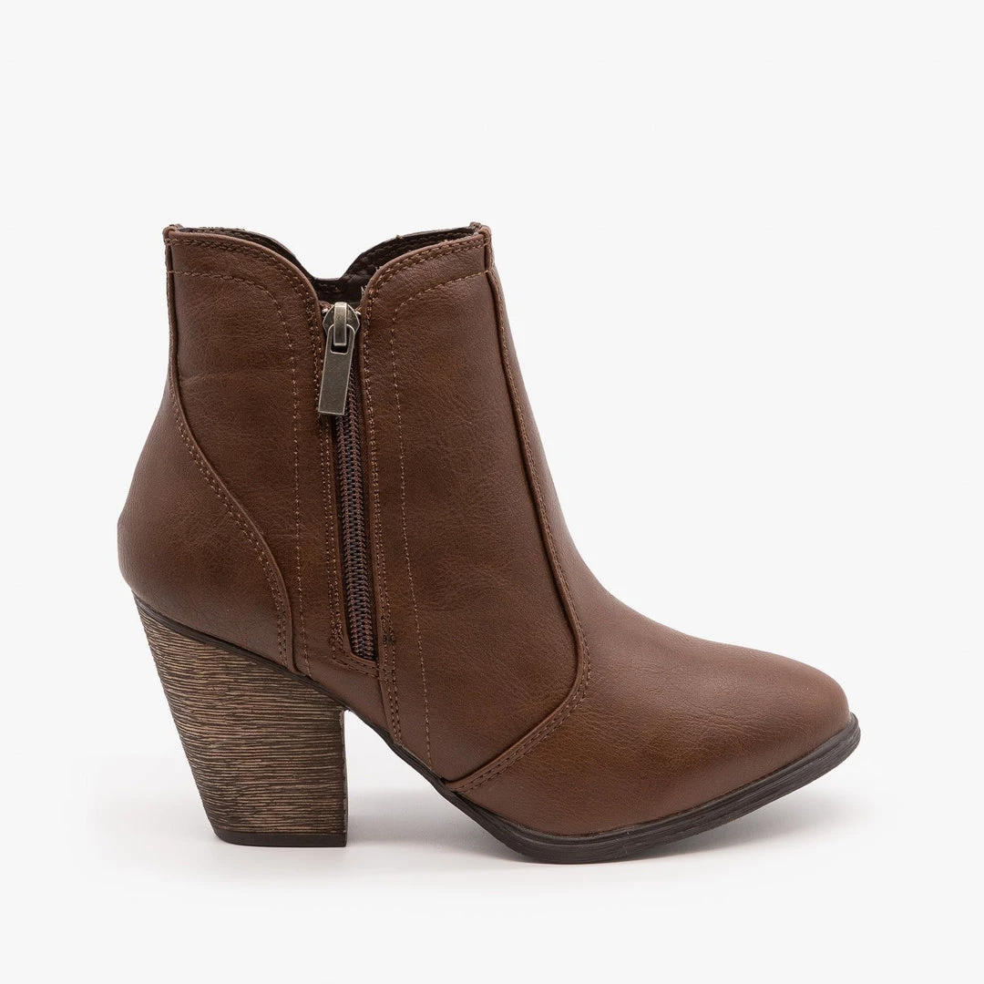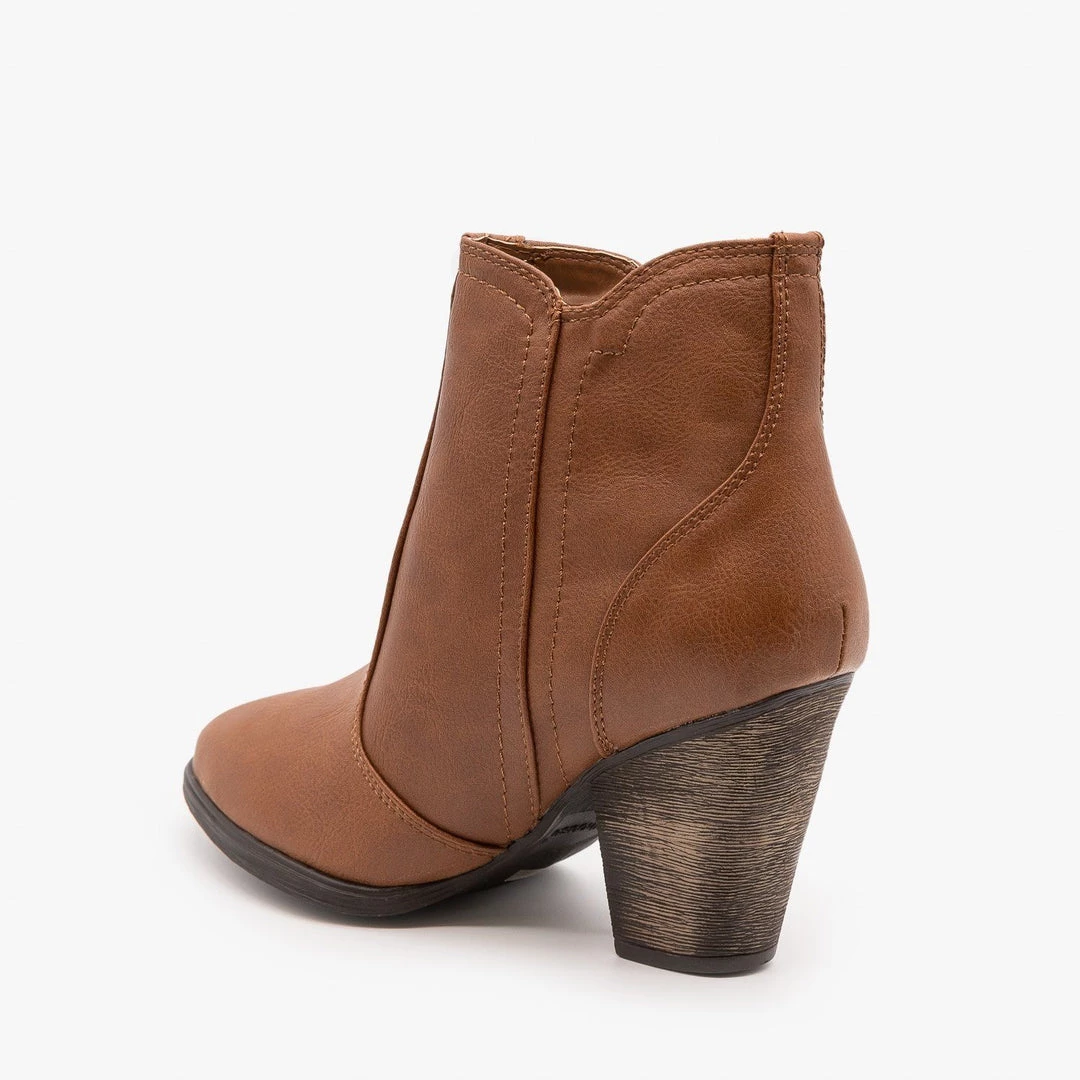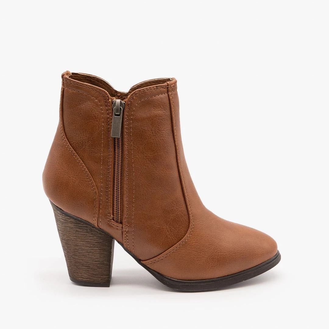 Put some kick in your step with these timeless Dollhouse Shoes Arrogant booties! Fashioned out of faux leather, these booties have an inside zipper and a beautiful almond shaped toe. With an approx. 3.5 angled block heel, you’ll stand out in any crowd! Pair these boots with a pencil skirt, button up and blazer for a day at work that leads straight into evening at an upscale restaurant. Made with all man-made/vegan materials and fits true to size.