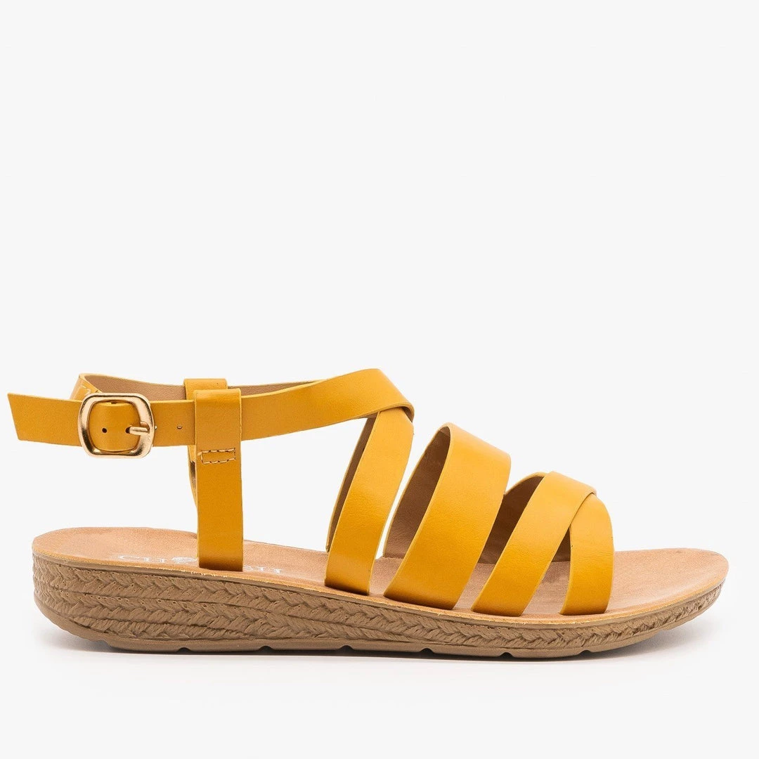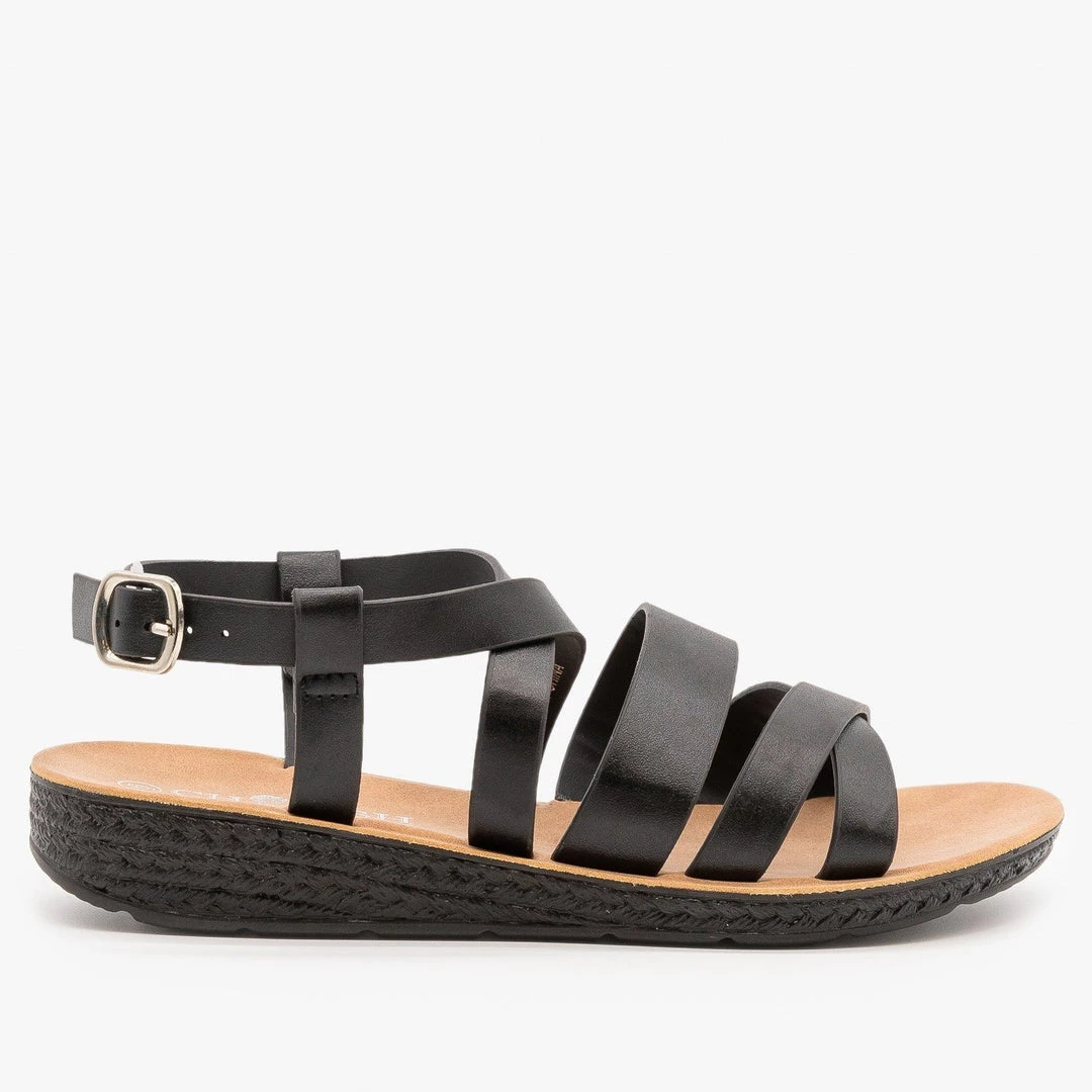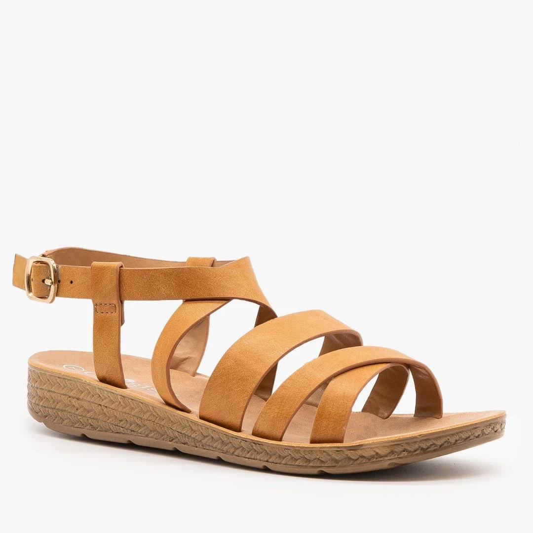 Walk on air in these Elegant Shoes Analise-25 sandals! Made out of faux leather, these sandals feature an adjustable ankle strap for easy on/off access and cushioned insoles for maximum support and comfort. The trendy strappy criss crossing strap design also gives these shoes some extra style. Available in several different colors, these shoes will go great with any outfit you put together! Made out of all man-made/vegan materials.