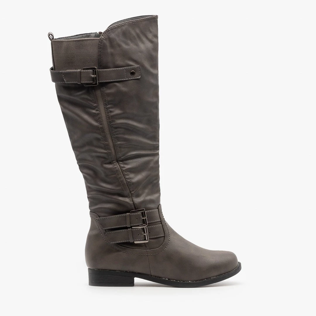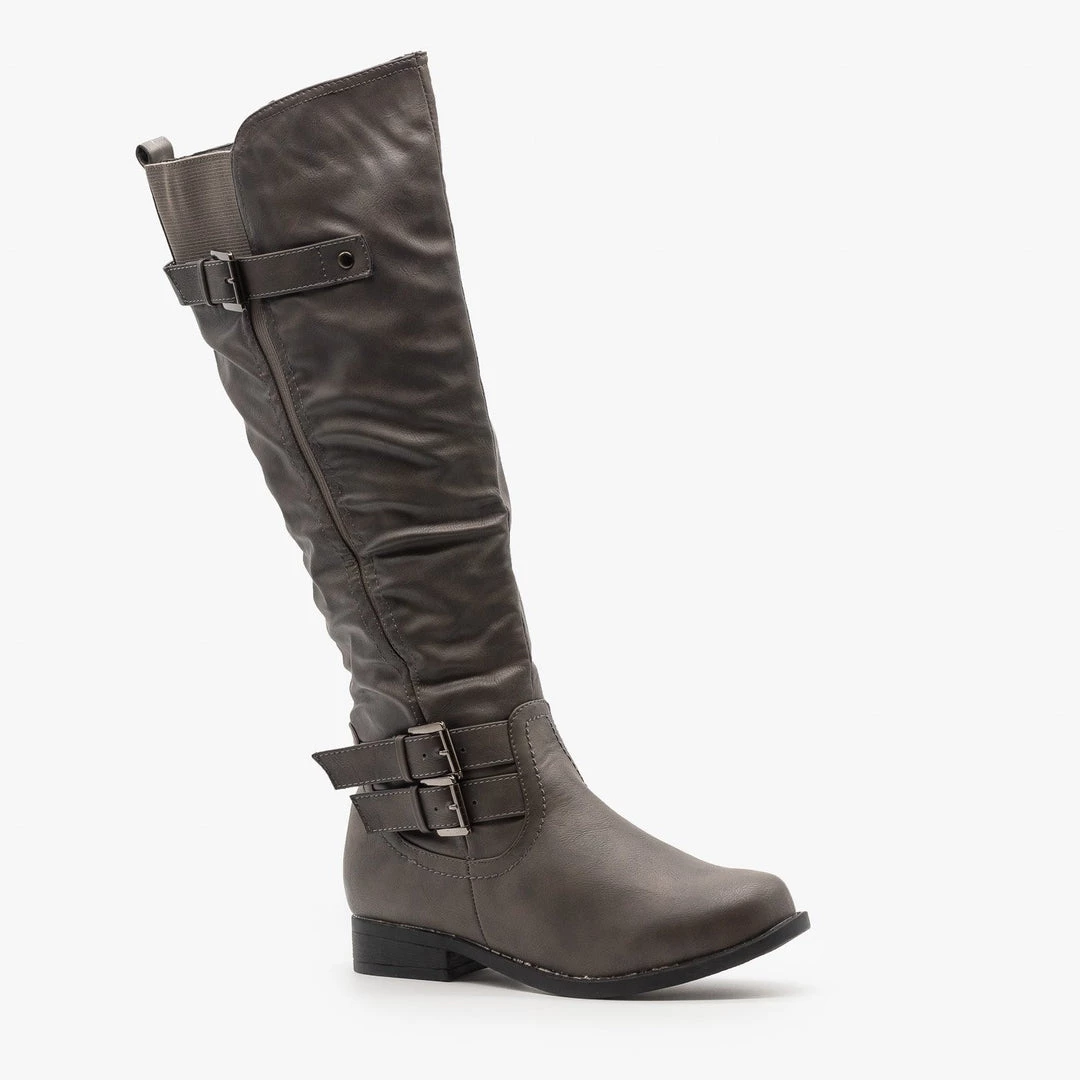 Put your best foot forward with the Fashion Focus Shoes Michael-10 riding boots! These riding boots are beautifully crafted out of faux leather and feature an approx. 1″ stacked heel for just a bit of height. The rounded toe and interior side zipper makes it easy and comfortable to wear these stylish boots all day long! A chic strap wraps around back top part of the boot and is fastened by a petite buckle. The double strap and buckle accents at the bottom of the boots add a bit of flair to these adorable and classic riding boots. There is also an elastic material on the side of the boot, making it easy to slip these on when you’re on the go! You’ll love wearing these with a pair of basic black leggings and an oversized chunky cardigan for the perfect fall outfit! Made with all man-made/vegan materials and fits true to size.