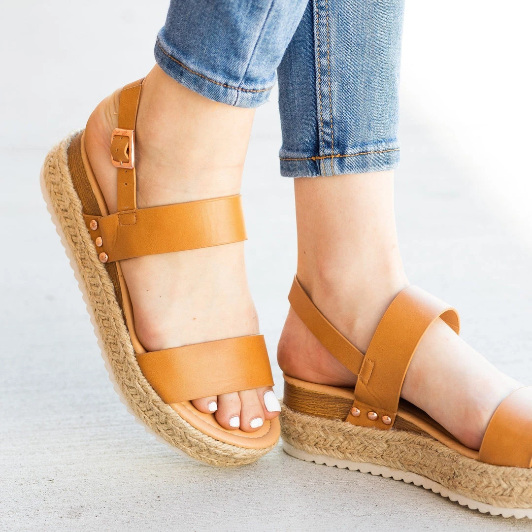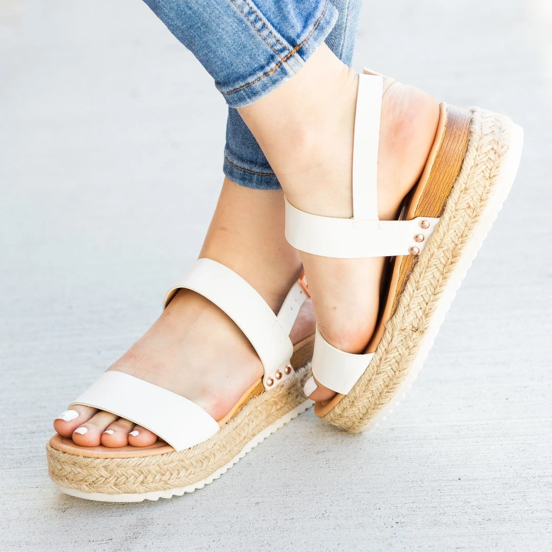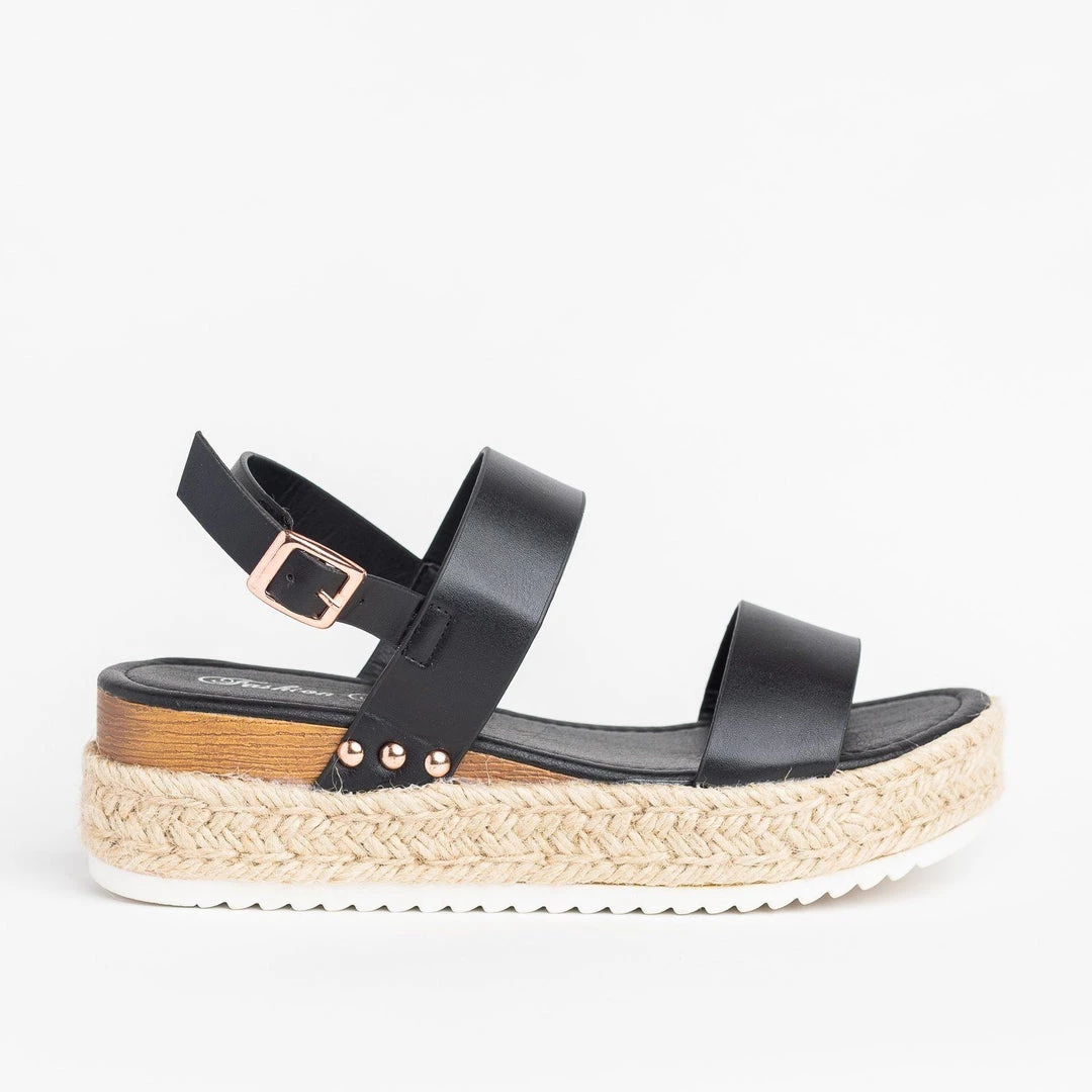 Take each day one step at a time with these Fashion Focus Kangol espadrille flatforms! Crafted out of faux leather, these flatforms feature an adjustable slingback-style ankle strap for easy on/off access and support and a trendy double strap design. The 1″ espadrille flatform gives these shoes some height and style while the ridged rubber sole provides extra grip. The 1″ added wedge gives these shoes some extra height. Wear these shoes with a pair of high-waisted ankle jeans and a cropped tank for the perfect summer outfit! Made with all man-made/vegan materials.