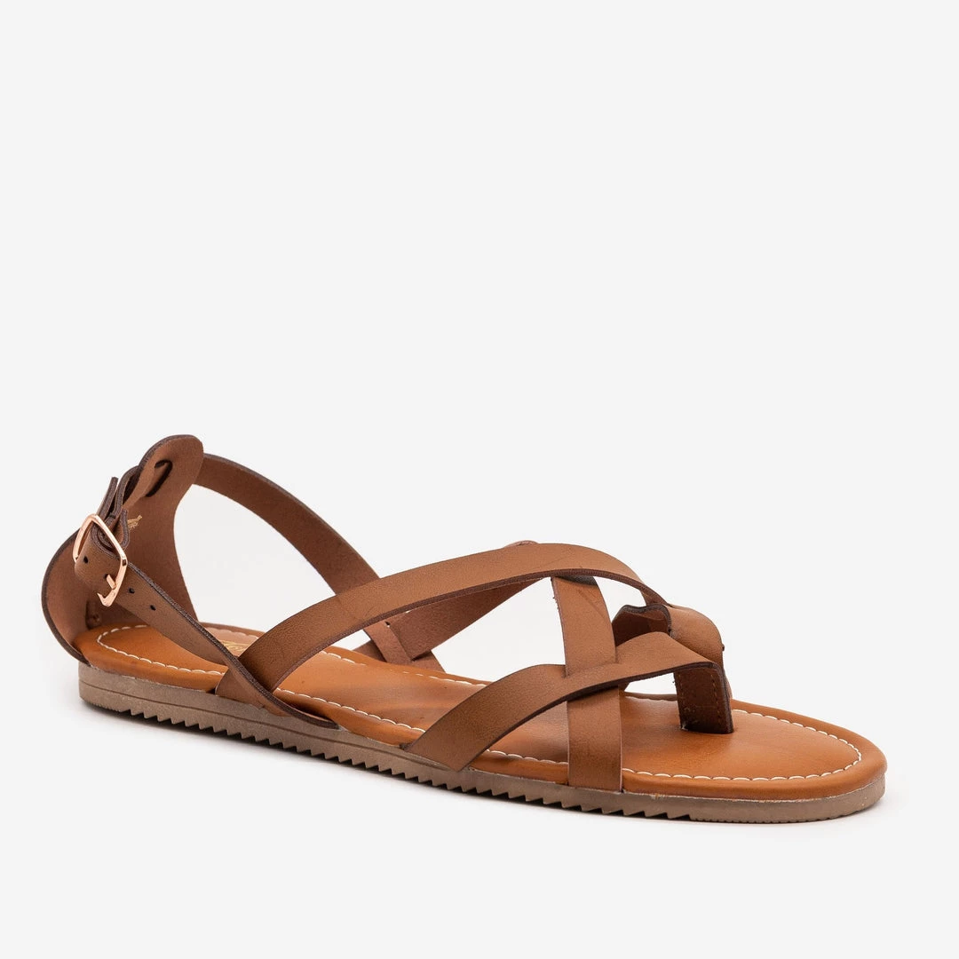 Every closet needs a classic sandal and these Forever Shoes Emilia-16 sandals are the perfect fit! Designed with faux leather, these sandals feature a flat heel, a lightly cushioned insole and a thong-toe. Several straps criss-cross over the body and a back ankle support helps keep you comfy. An adjustable buckle on the outer ankle lets you slip these beauties on and off with ease. Pair them with your favorite sweater and jean shorts for the perfect summer day look! Made with all man-made/vegan materials and runs true to size.