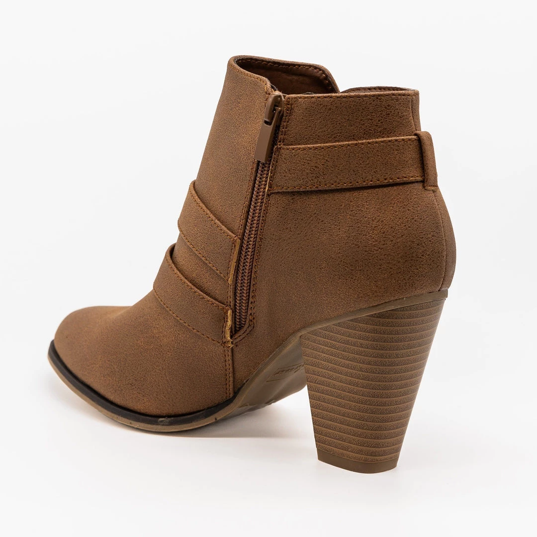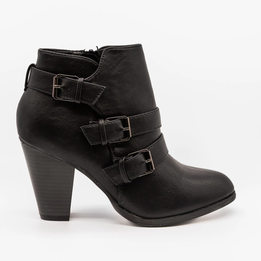 Fall in love with these Forever Shoes Camila-64 almond-toe booties! Crafted out of faux leather, these booties feature a posh almond-shaped toe and a 3.5″ stacked heel for maximum height and sass. The interior side zipper makes these shoes super easy to put on and take off while the buckle accents give these shoes an edgy look. Pair these booties with a basic t-shirt dress and a fitted denim jacket for a cute and casual look! Made with all man-made/vegan materials.