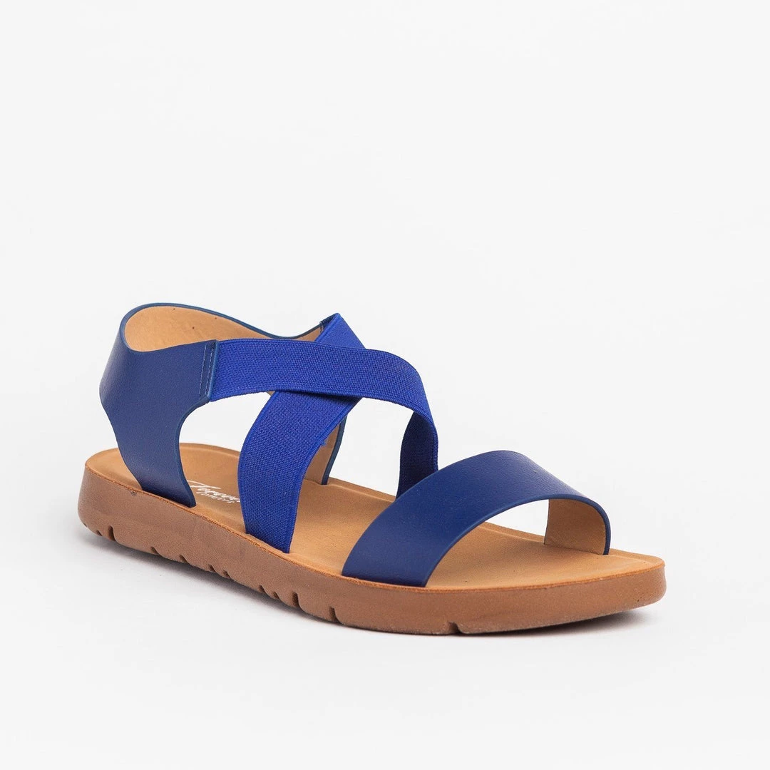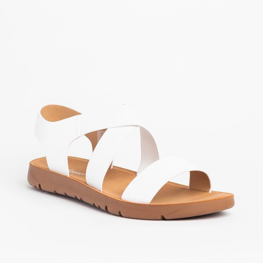Take each day one step at a time with these Forever Shoes Reform-53 sandals! Made out of faux leather, these sandals feature a criss crossing elastic strap design for style and comfort. The slip-on style makes these shoes easy to wear while the cushioned insoles provide maximum comfort for everyday use. Available in a variety of lovely colors, these sandals will be the perfect finishing touch to any outfit! Made out of all man-made/vegan materials.